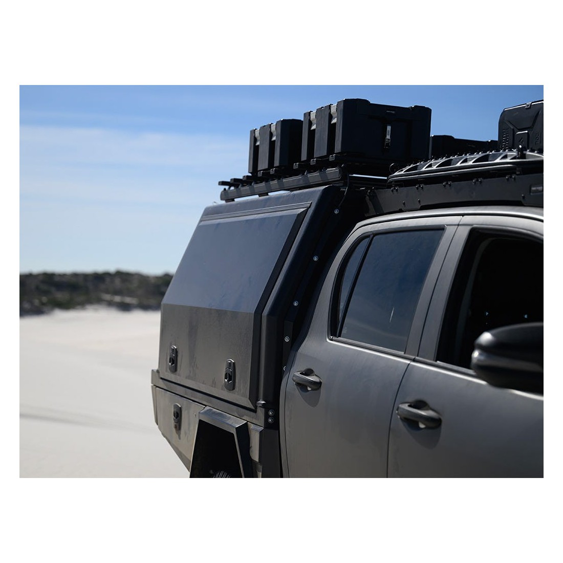 Le kit polyvalent Slimpro Canopy Rack vous permet de ranger votre matériel essentiel sur votre canopée. Les configurations adaptables des lattes et les nombreux accessoires du Front Runner Rack permettent des transitions en douceur entre l'équipement essentiel du travailleur de semaine et l'équipement d'exploration du week-end. Ce kit Canopy et les accessoires du rack sont la meilleure façon d'améliorer le transport d'équipement externe sur votre canopy.