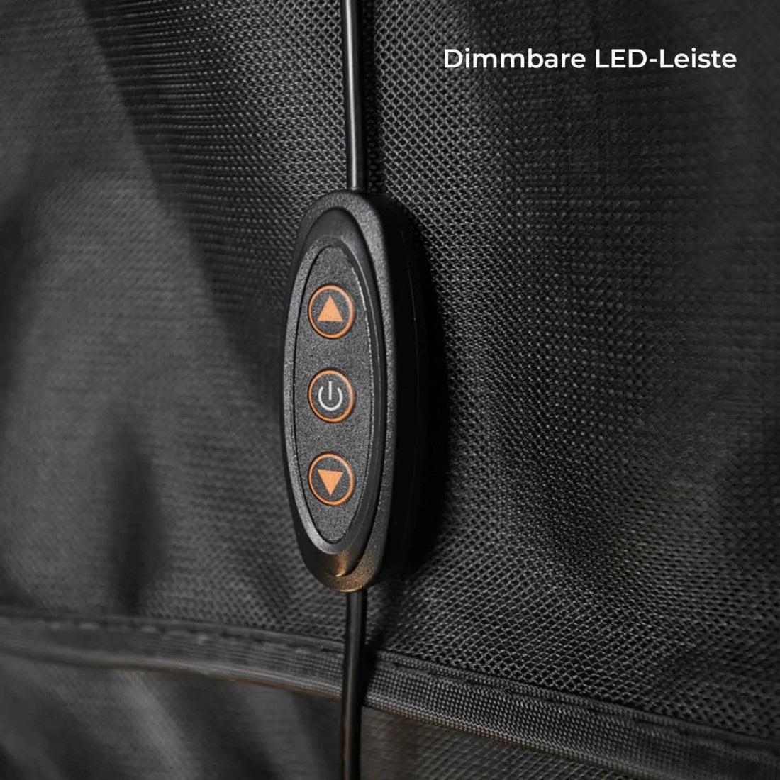 Toujours incluse, la literie assure un confort optimal : un matelas en mousse à mémoire de forme de 6 cm avec housse déperlante, posé sur un sous-matelas en filet pour une bonne circulation de l’air. L’intérieur est équipé d’un éclairage LED ajustable alimenté par USB, tandis que toutes les ouvertures sont protégées par des moustiquaires à maille fine. Deux grands sacs à chaussures sont fixés à l’entrée de la tente, pour garder l’espace de couchage propre et organisé.