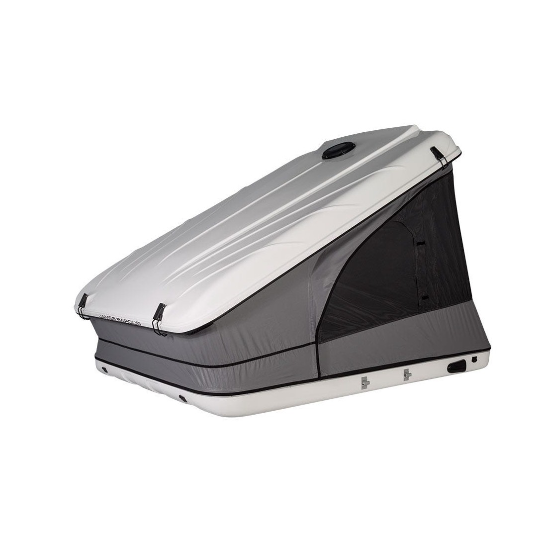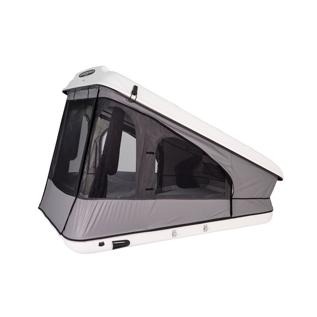 Cette tente à coque dure s'ouvre en forme de triangle avec une grande hauteur intérieure. Beaucoup d'espace pour se déplacer et très facile et rapide à ouvrir et à fermer.