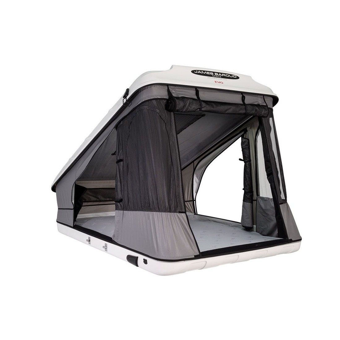 Les utilisateurs de grande taille peuvent se faire plus confortables après leurs longues randonnées grâce à cette tente de toit Space de James Baroud. Le profil incliné rend la tente idéale pour s'étendre et profiter du confort et de la qualité qui font la réputation de James Baroud.