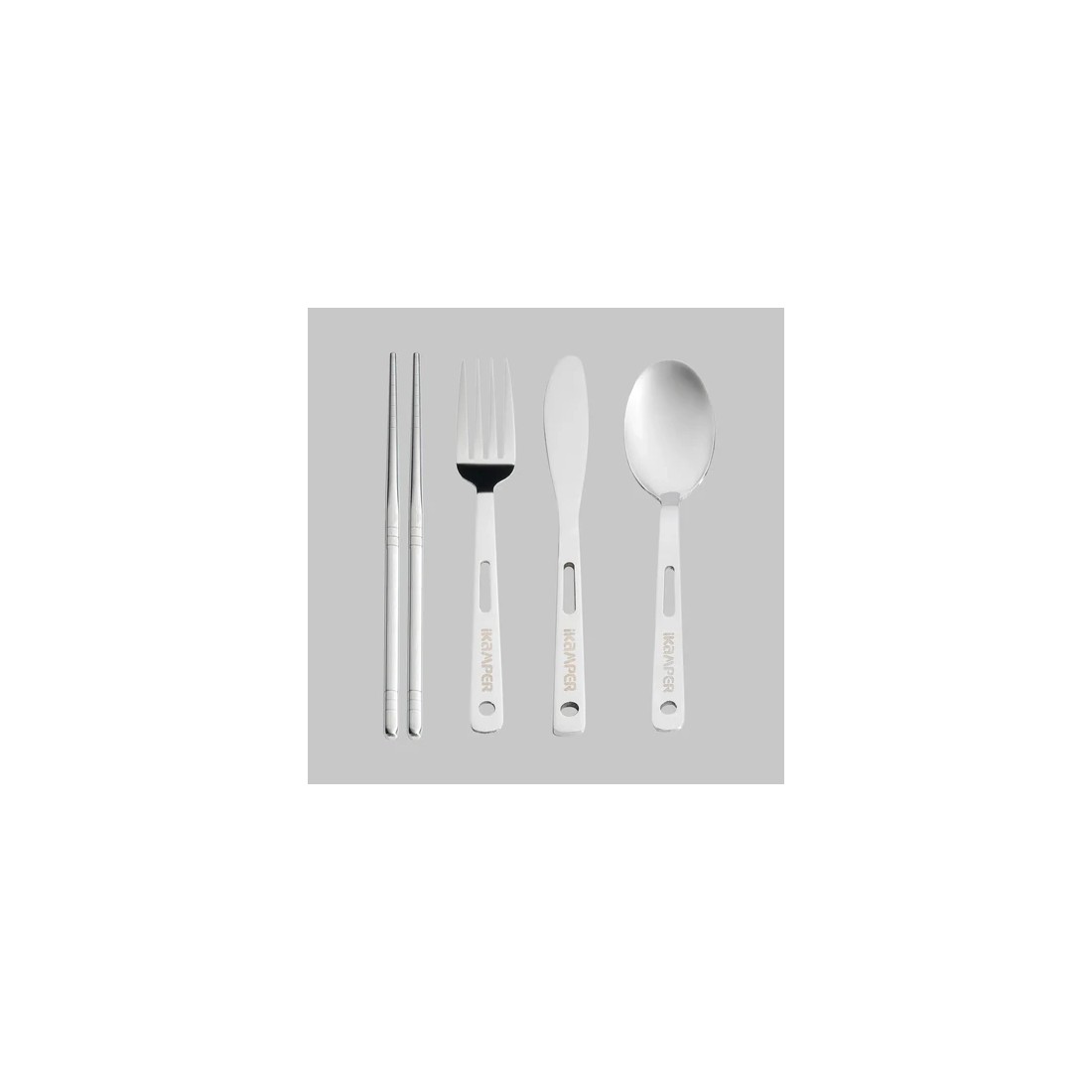 Set de couverts iKamper, comprenant fourchette, couteau et cuillère , ainsi que des baguettes en acier inoxydable qui vont au lave-vaisselle.