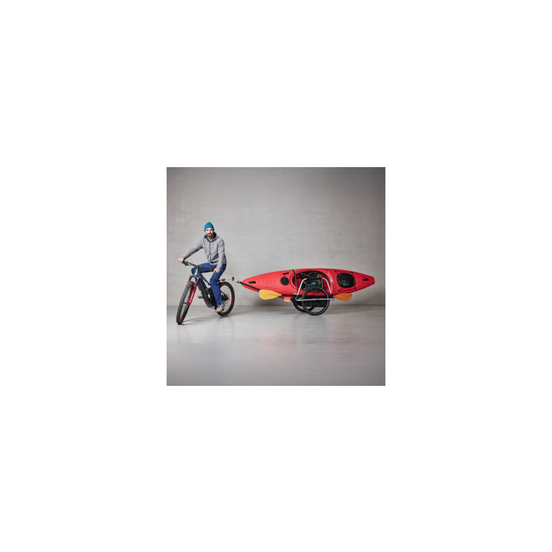 Le Thule Reacha Sport est une remorque de vélo à pneus standards, modulaire en aluminium anodisé, offrant une capacité de charge de 35 kg en mode vélo et jusqu'à 60 kg en mode chariot à main. Grâce à son bras d'attelage extensible, elle peut transporter des objets jusqu'à 4,5 mètres de long, tels que des planches de surf, des kayaks ou des planches à pagaie (SUP). Son design ajustable et pliable permet une utilisation flexible et un rangement compact.