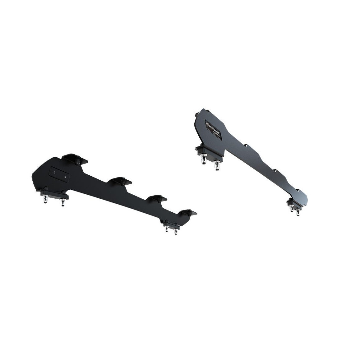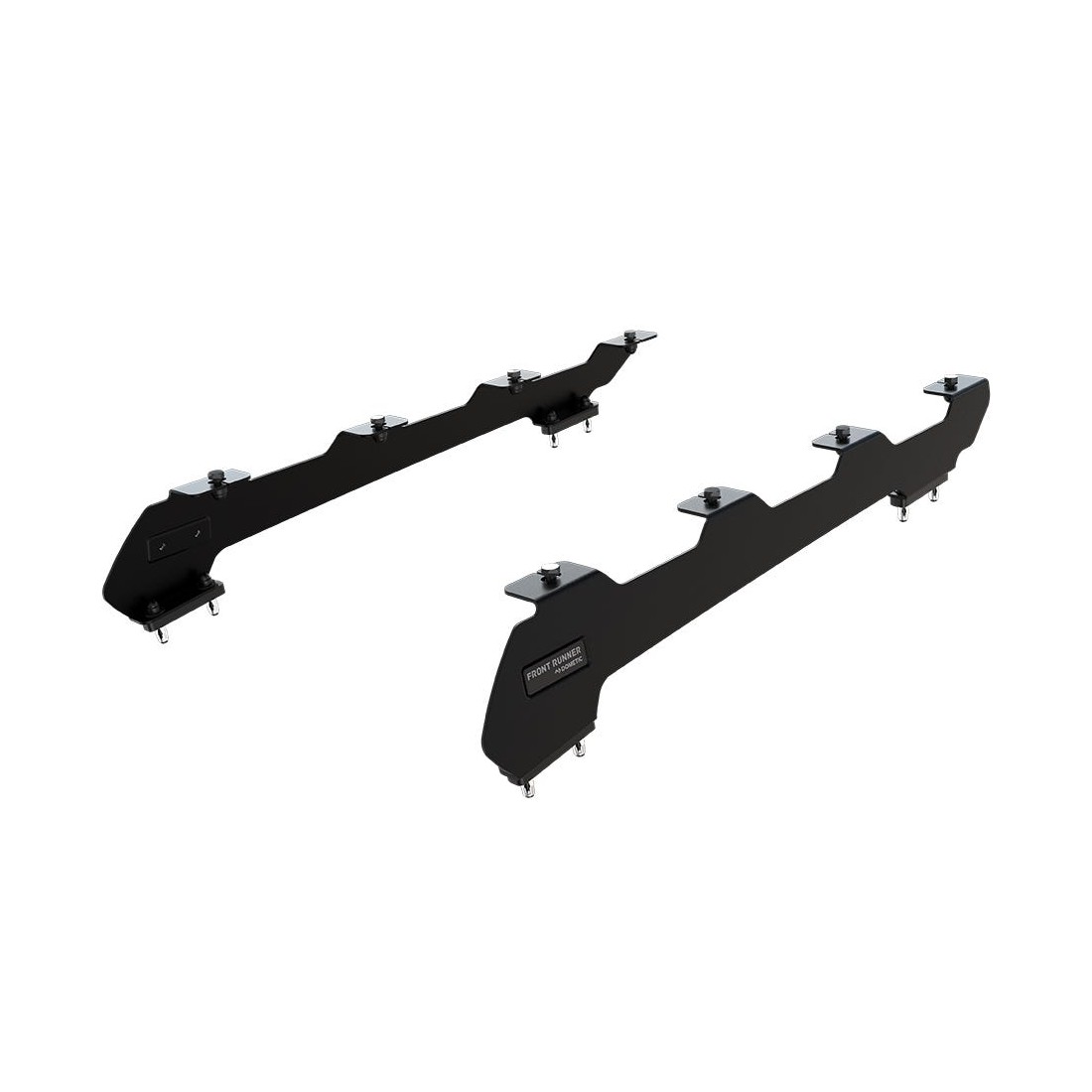 These foot rails fit the Ram 1500 Quad Cab and allows a 4 slat Slimline II to be fitted with an Over Cab Camper installed. The foot rails is also suitable for the following models (Installs at the same front mounting point): RAM 1500 - Quad Crew Cab RAM 2500 - Regular, Crew Mega Cab RAM 3500 - Regular, Crew Mega Cab RAM 4500 - Regular, Crew Cab Comes in a set of (2) two, the left-hand side and right-hand side. The foot rails follow the contours of the vehicle's roof line, providing a sturdy base to fit the Front Runner Roof Rack. Made of high strength steel and sealed with the same durable, weather-resistant powder coating as the Front Runner Roof Rack. Drilling into the vehicle's roof is required. Installation hardware and fitting instructions included.