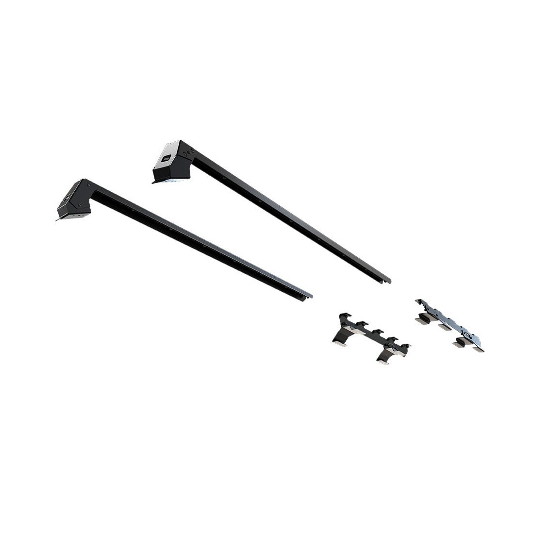 Livré dans un ensemble de (4) quatre rails : 1 paire de rails avant et 1 paire de rails arrière à pince, avec tout le matériel d'installation inclus.Les rails avant s'adaptent aux points de fixation des accessoires d'usine sur le haut du pare-brise et les rails arrière se fixent en utilisant les points de fixation d'usine dans le toit.Les foot rails suivent les contours de la ligne de toit du véhicule, fournissant une base solide pour le montage de la galerie de toit Slimline II de Front Runner.Les panneaux de toit avant sont amovibles lorsque la galerie et les rails sont installés.Fabriquées en acier et recouvertes du même revêtement en poudre durable et résistant aux intempéries que les galeries Front Runner.Le matériel d'installation et les instructions de montage sont inclus.