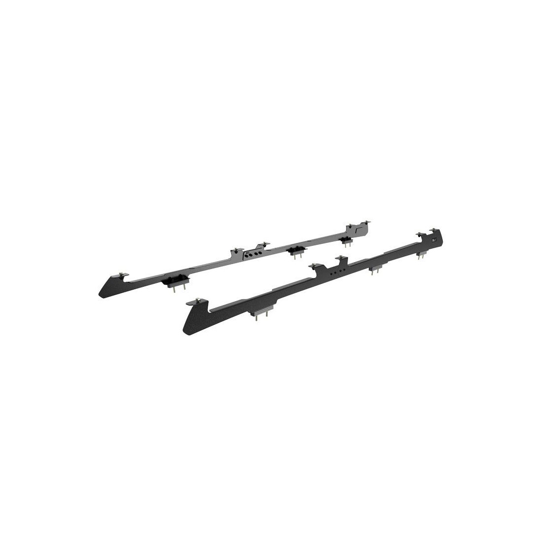 Comes in a set of (2) two. Left hand side and right hand side. Foot rails allow for the mounting of under rack storage slides as well as a table (Storage orientation and table size will depend on the length and width of the Rack). No drilling or track required. These Foot Rails contain 2 openings to access Front Runner under rack mount tables (1 smaller TBRA018 and 1 larger TBRA017).