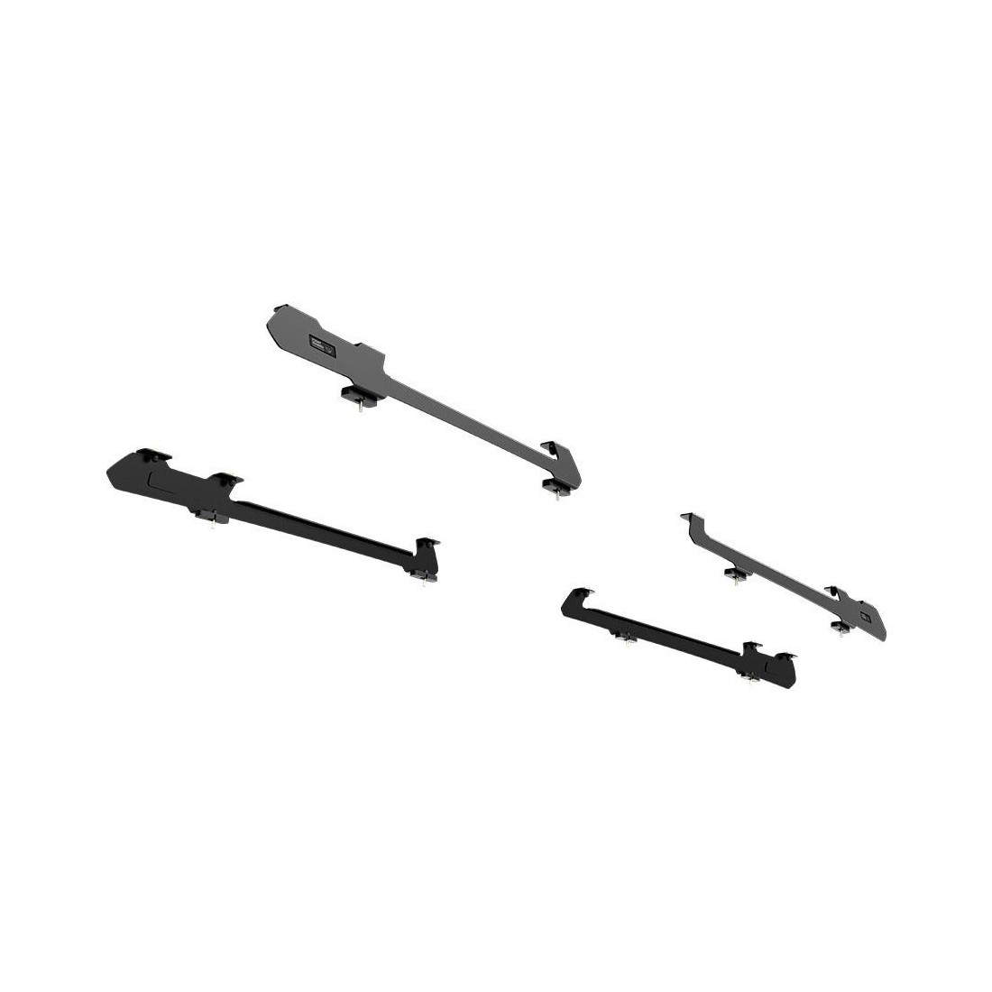 Cette paire de rails, avec des pieds de montage intégrés, est utilisée pour fixer la galerie de toit Front Runner Slimline II à la Caravelle / Transporter Volkswagen T5/T6 en utilisant les points de montage existants du véhicule.