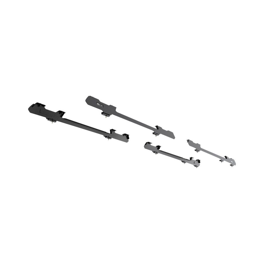 Cette paire de rails, avec des pieds de montage intégrés, est utilisée pour fixer la galerie de toit Front Runner Slimline II à la Volkswagen T5/T6 Caravelle/Transporter LWB en utilisant les points de montage existants du véhicule.