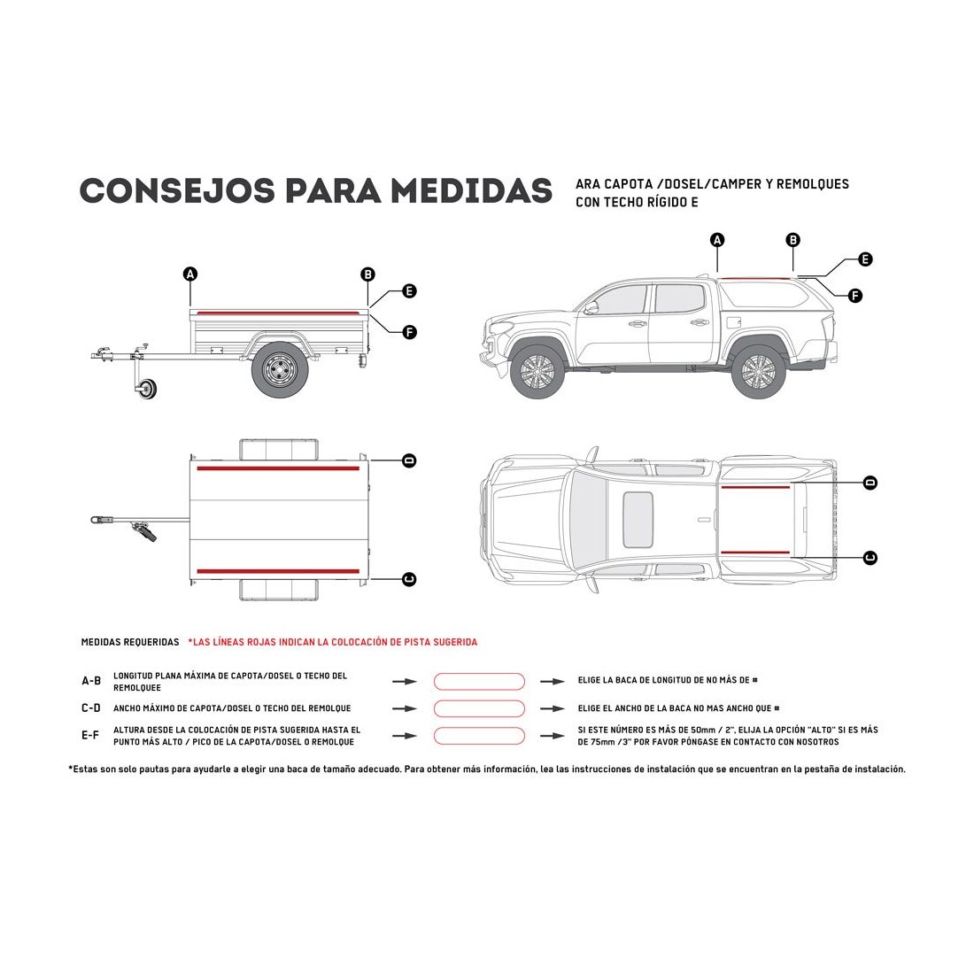 Si votre galerie Slimline II a besoin de Foot Rails, ajoutez la hauteur du plateau Slimline II (50mm/ 2'') à la hauteur des Foot Rails pour déterminer la hauteur de la galerie à partir du point le plus haut du toit de votre véhicule.