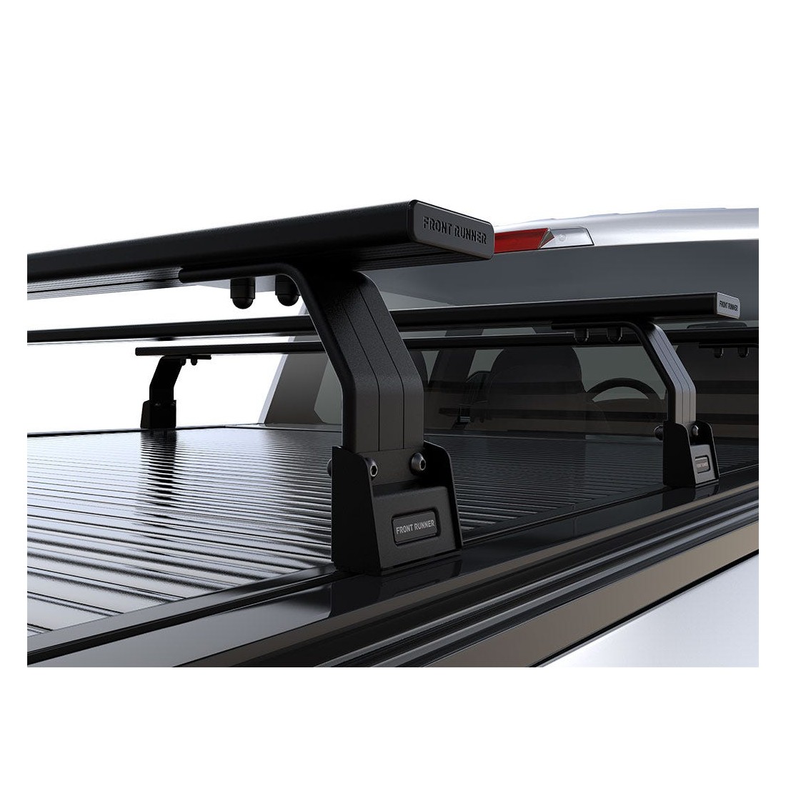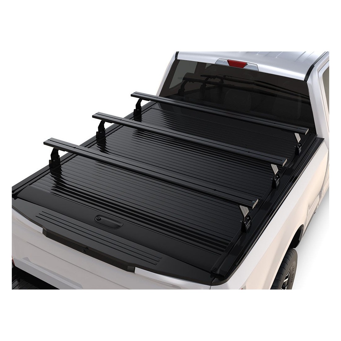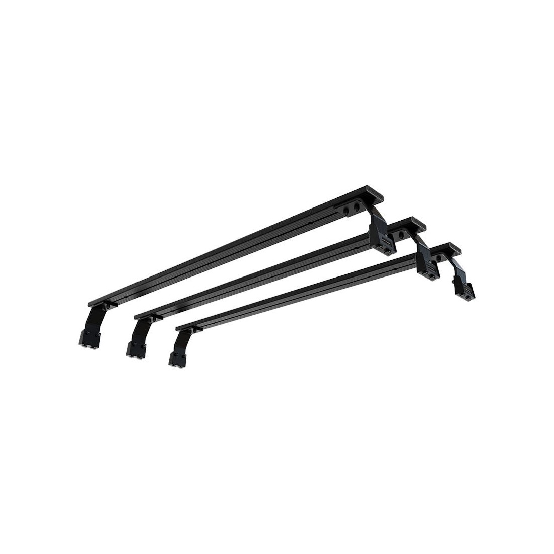 Ce triple ensemble de barres de toit vous permet de transporter des équipements et de fixer des accessoires Front Runner au-dessus de la benne de votre Chevrolet Silverado/GMC Sierra lorsque vous n'avez pas besoin de galerie complète. Cette solution à profil bas s'adapte aux rails ReTrax XR existants et ne compromet en rien la capacité de charge normale de la benne, tandis que la porte rabattable fonctionne comme d'habitude.