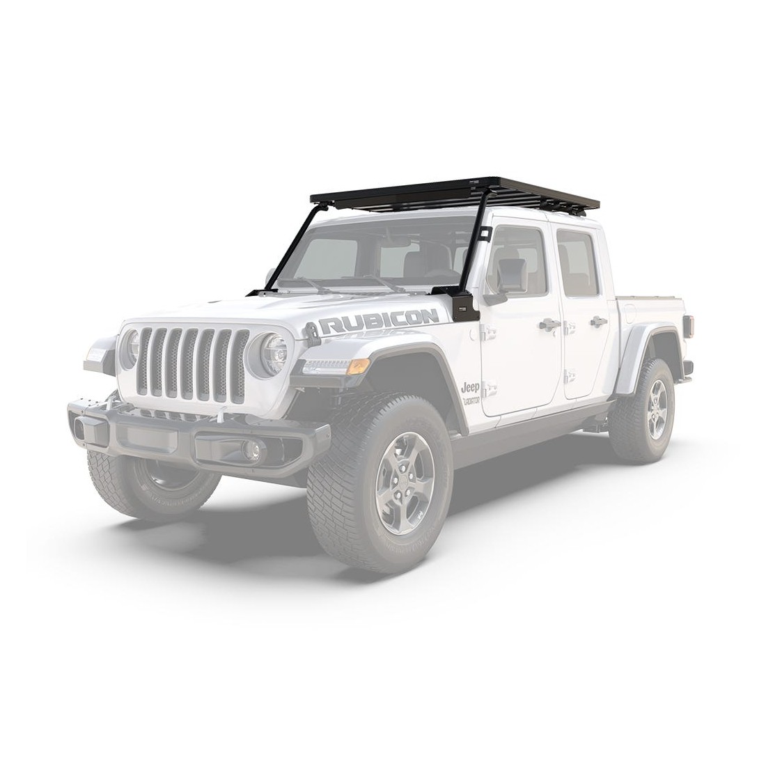 KRJG017T - Jeep Gladiator JT (2019-Current) Extreme Slimline II Roof Rack Kit Consisting of: 1x FAJL011 - Jeep Wrangler JL (18-Curr)Front Bar RRack Mount1x FAJT001 - Jeep Gladiatorr JT (2019-Curr) Foot Rails1x FAJT002 - Jeep Gladiator (2019-Curr) Inner Brackets1x RRSTJ08 - SLII Tray - 1425mm(W)X1560mm(L) Material Used: Black epoxy powder - coated T6 aluminium High strength steel Approximate Installed Weight: 43kg (94.8lbs) The t-slots on the tops and bottoms of the rack tray slats and edge profiles accommodate standard 8mm bolts.To determine the approximate height from your vehicle’s roof to the top of your Slimline II Roof Rack, add the height of the Slimline II Tray (50mm/2'') to the height of the Foot or Grab-on Foot listed above.If your Slimline II Roof Rack kit uses Legs, add the height of the Slimline II Tray (50mm/2'') to the height of the Legs to determine the height of the rack from your vehicle's rain gutters.If your Slimline II Roof Rack kit uses Foot Rails, add the height of the Slimline II Tray (50mm/2'') to the height of the Foot Rails to determine the height of the rack from the crown (highest point) of the vehicles roof. Shipping Dimensions: Width: 440mm (17'') Length: 1720mm (68'') Height: 310mm (12'') Shipping Weight: Weight: 43kg (95lbs)