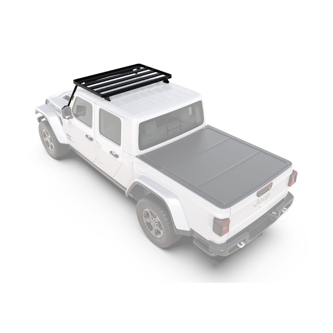 KRJG018T - Jeep Gladiator JT (2019-Current) Cab Over Camper Slimline II Roof Rack KitConsisting of: 1x FAJL011 - Jeep Wrangler JL (18-Curr)Front Bar RRack Mount1x FAJT003 - Jeep Gladiator JT (2019-Current) Foot Rail/Mini1x RRSTJ05 - SLII Tray - 1425mm(W)X954mm(L)Material Used:Black epoxy powder - coated T6 aluminiumHigh strength steelApproximate Installed Weight: 31.2kg (68.78lbs) The t-slots on the tops and bottoms of the rack tray slats and edge profiles accommodate standard 8mm bolts.To determine the approximate height from your vehicle’s roof to the top of your Slimline II Roof Rack, add the height of the Slimline II Tray (50mm/2'') to the height of the Foot or Grab-on Foot listed above.If your Slimline II Roof Rack kit uses Legs, add the height of the Slimline II Tray (50mm/2'') to the height of the Legs to determine the height of the rack from your vehicle's rain gutters.If your Slimline II Roof Rack kit uses Foot Rails, add the height of the Slimline II Tray (50mm/2'') to the height of the Foot Rails to determine the height of the rack from the crown (highest point) of the vehicles roof.Shipping Dimensions:Width: 440mm (17'')Length: 1720mm (68'')Height: 300mm (12'')Shipping Weight:Weight: 31.2kg (69lbs)