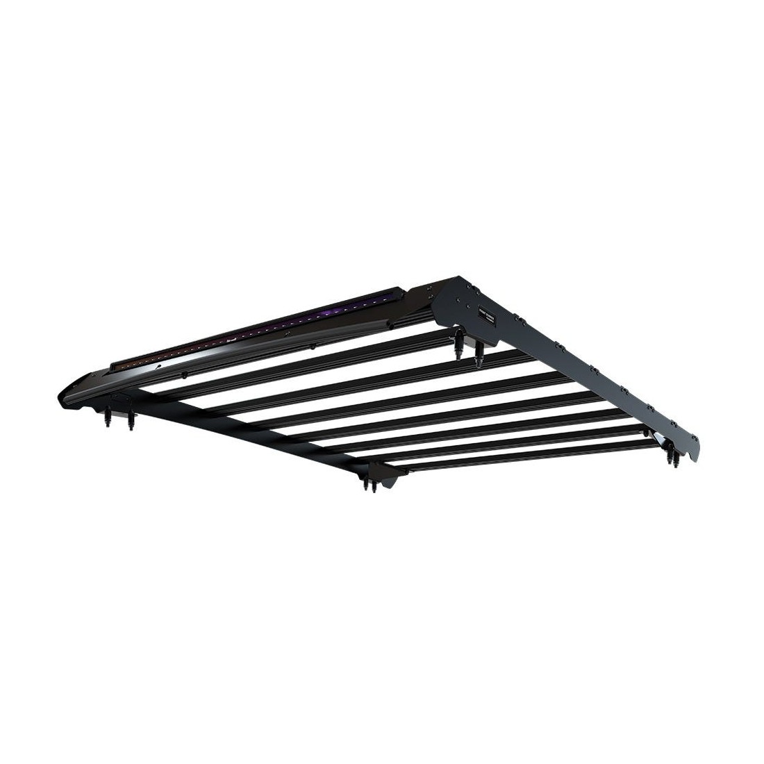 This low-profile flat deck Slimsport rack has a load carrying area of 1610mm (63.4'') L x 1295mm (51'') W. The sleek side rails have integrated mounting feet. The mounting feet also have additional brace brackets for added strength. The high-strength aluminum slats have T-slots suitable for all Front Runner Dometic top mount accessories. Easily add on the Rack Accessory Mounting Bracket RRAC182 for most Front Runner side mount accessories (sold separately). The RRAC385, it has a 40'' cutout to allow the use of the LIGH213 (sold separately). Fitment guide and all mounting hardware included. Note: No drilling required for installation. Note: Under Rack Tables and some side mount accessories such as JADA010 and RRAC103 are not compatible with the Slimsport rack kit range. All Front Runner Racks are backed by a Limited Lifetime Warranty*