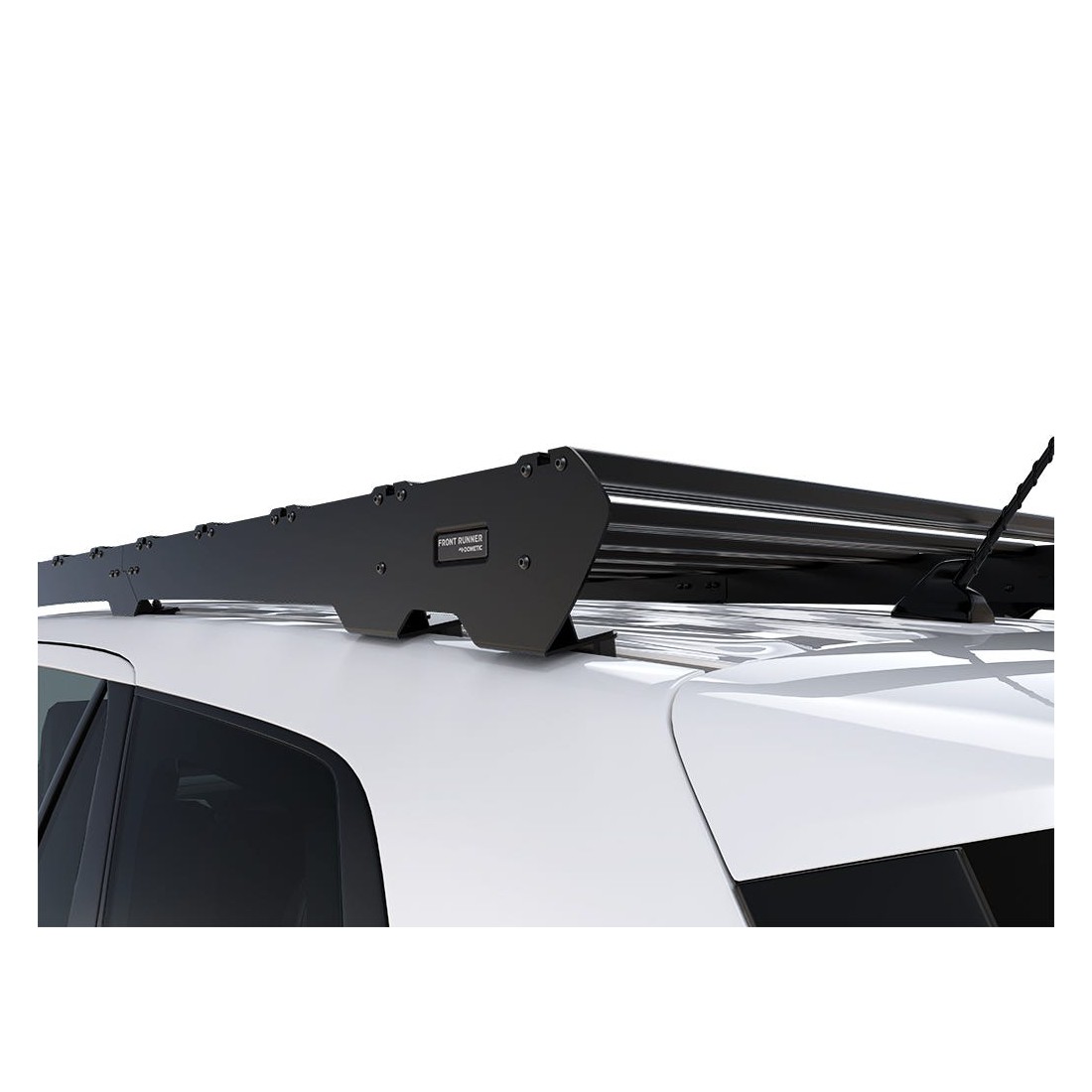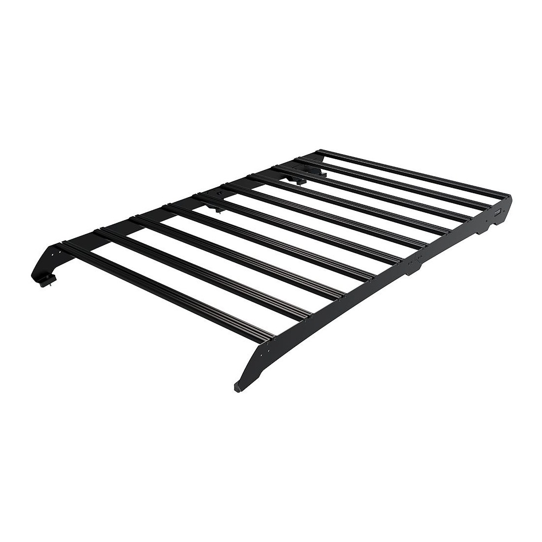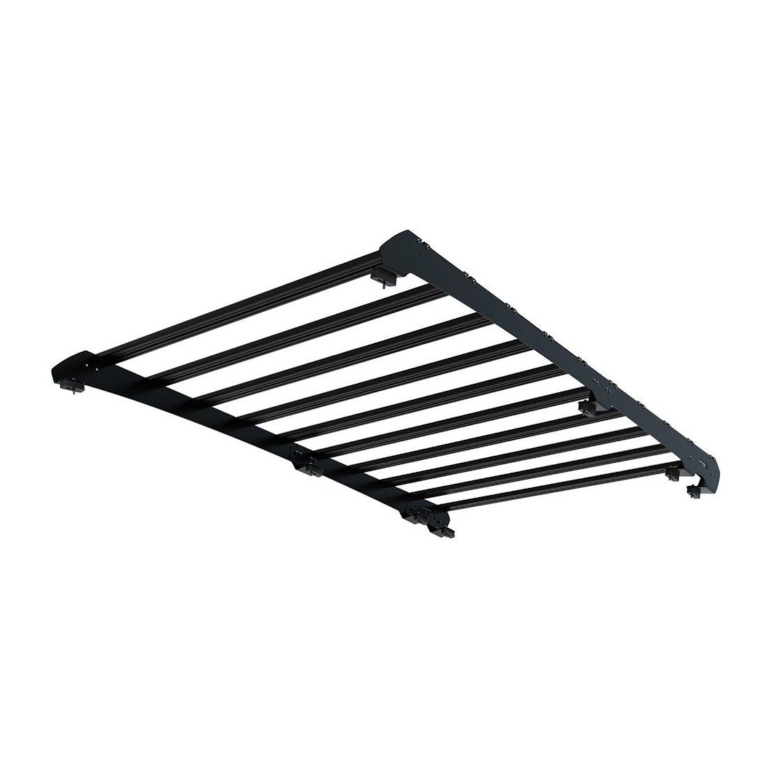 This low-profile flat deck Slimsport rack has a load-carrying area of 2043mm (80.4'') L x 1217mm (47.9''). The sleek side rails have integrated mounting feet. Mounting feet have additional brace brackets for added strength. The high-strength aluminum slats have top and bottom T-slots suitable for all Front Runner top mount accessories. Add a standard full fairing RRAC347 (sold separately) with rubber edge trim, makes the rack ultra-quiet. Need a lightbar? Add the optional RRAC348 (sold separately) has a 40'' cutout to allow use of LIGH213 (sold separately). Fitment guide and all mounting hardware included. No Drilling required. Note: Under Rack Tables and some side mount accessories such as JADA010 and RRAC103 are not compatible with the Slimsport rack kit range.