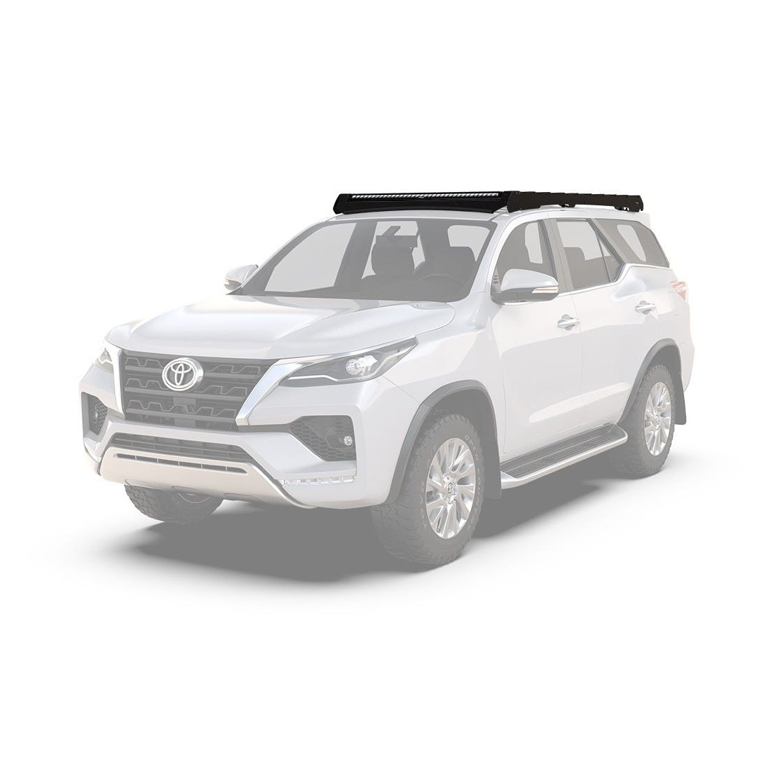Prepare for any trip with the light bar ready Toyota Fortuner Slimsport Roof Rack Kit. This lightweight, high-strength rack securely holds your camping and overland gear, instantly freeing up valuable interior space. It's a fully modular system that can be easily customized with a wide range of accessories to match every adventure. Thanks to the 40-inch cutout, you can also fit a light bar for extra nighttime illumination.