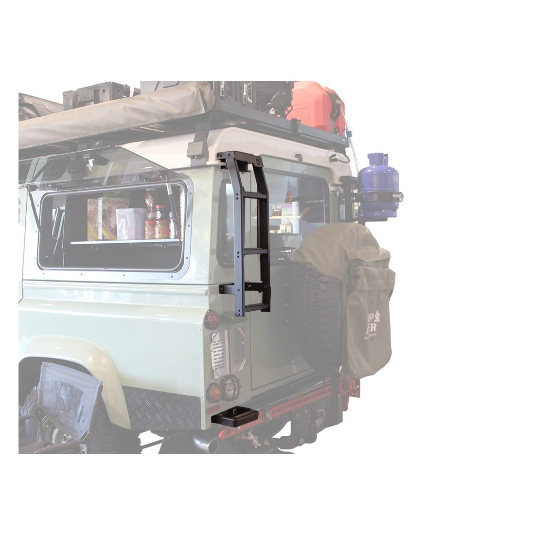 Your Defender deserves a ladder as tough as it is. Gain easy access to the roof for quick loading and unloading of adventure gear using this smart ladder that clamps onto the gutter and bolts to the vehicle body. The bottom rung mounts below the bumper using existing holes.