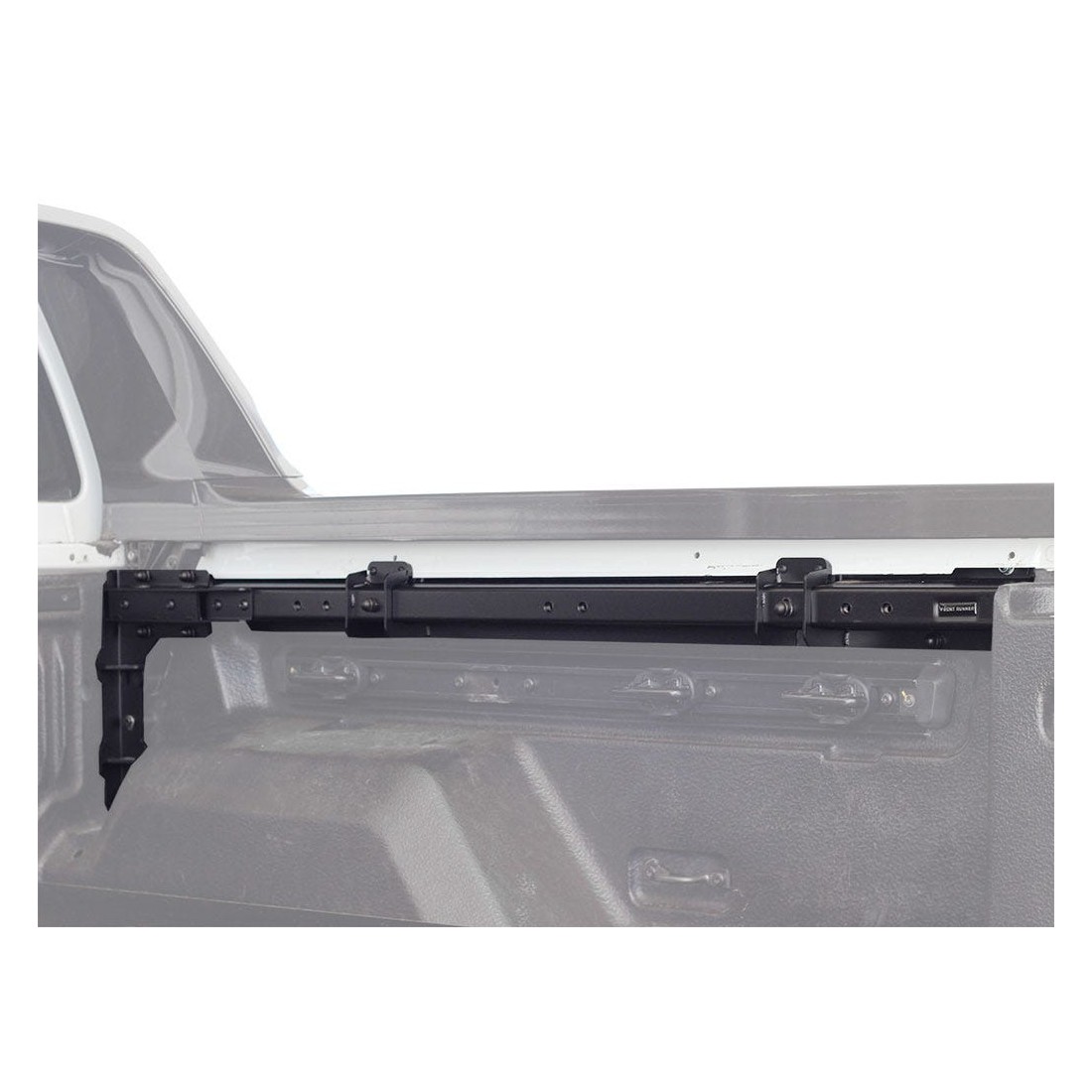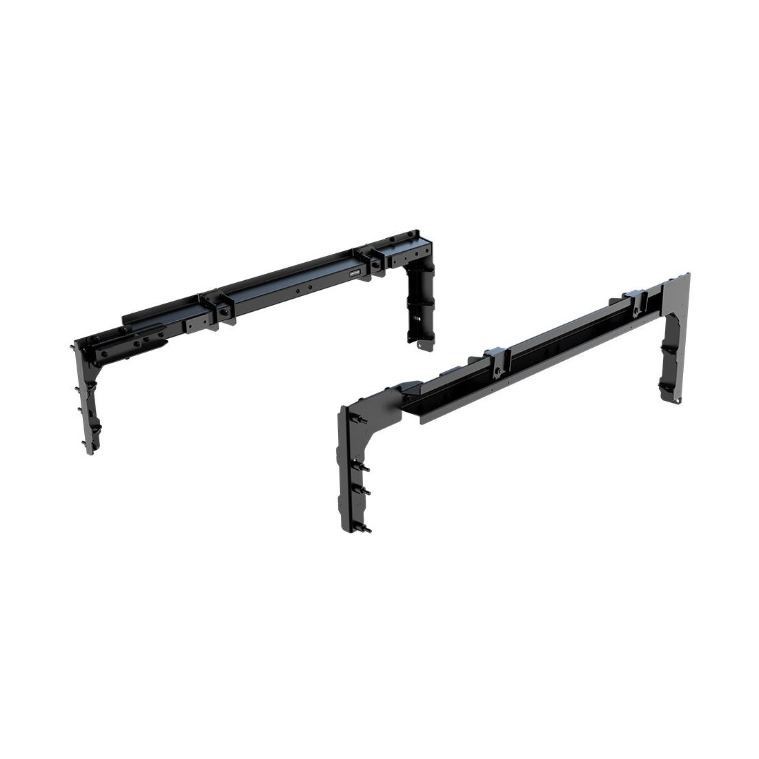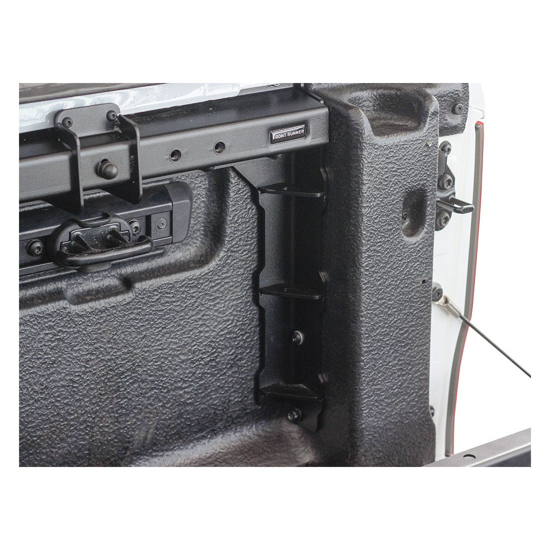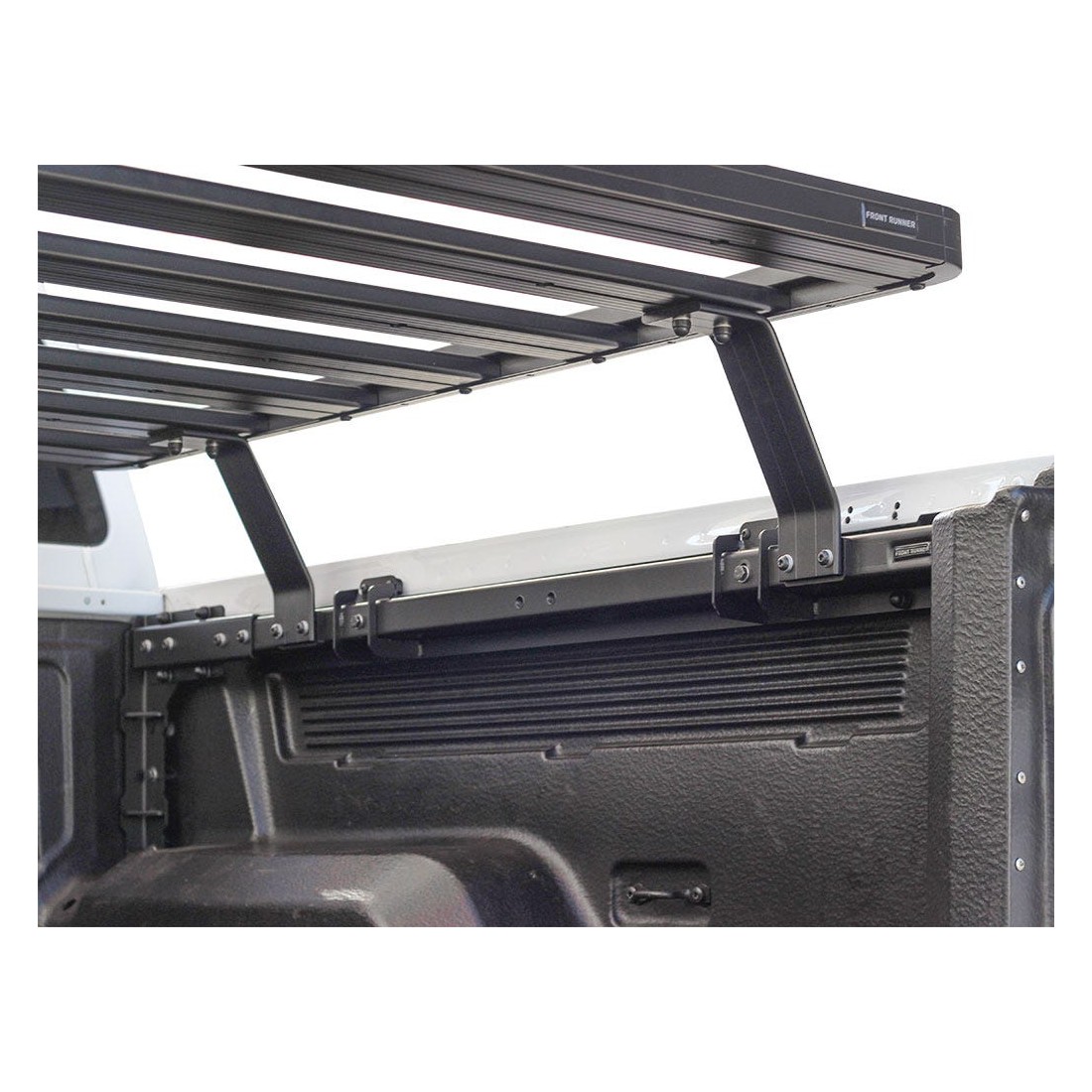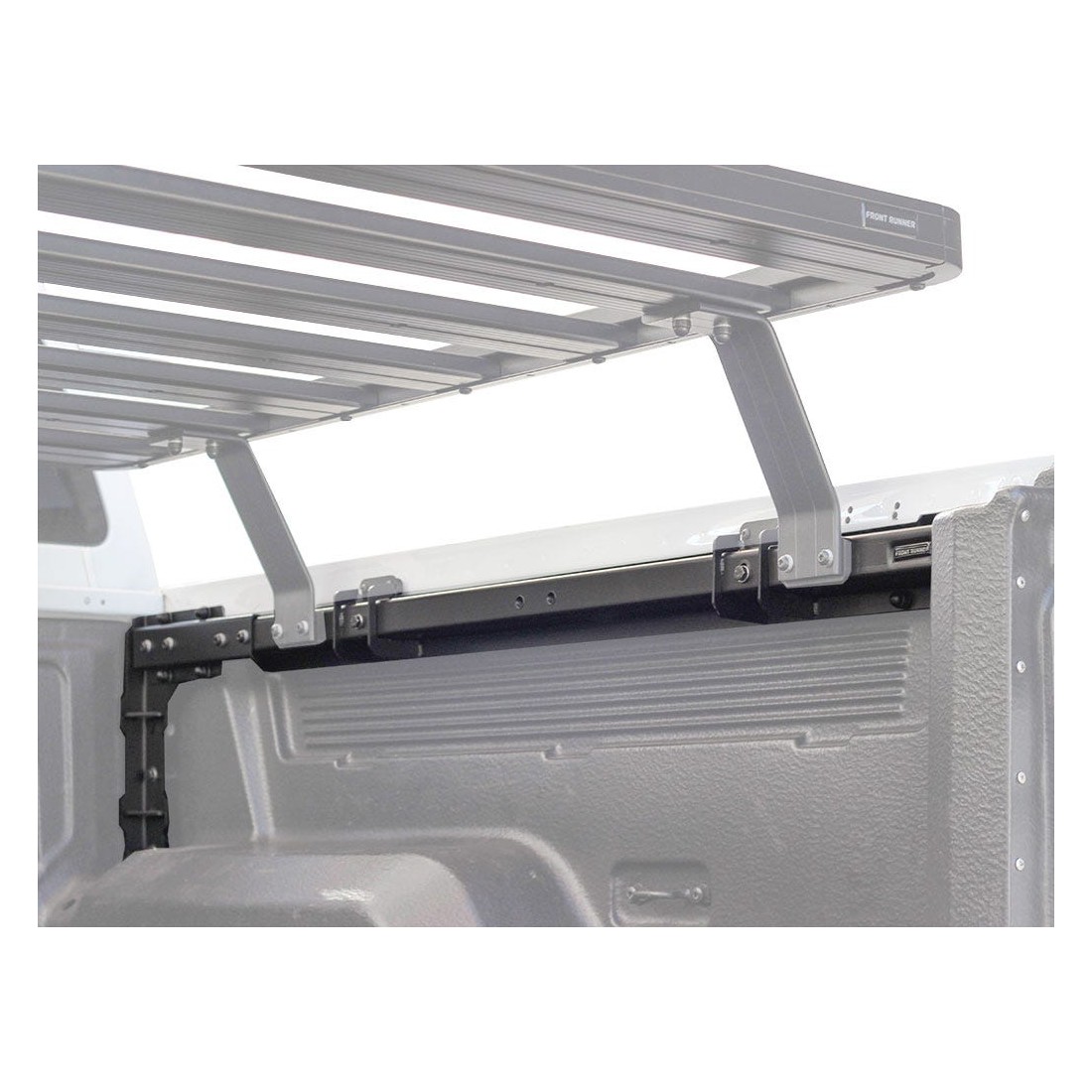 Un ensemble de supports qui sont fixés sur les points de montage de l'usine et qui s'accrochent sur le bord intérieur de la benne de chargement du Ford Ranger. Ces supports permettent de monter les jambes du plateau de chargement universel / moyen du Front Runner (paire) sans percer ni modifier le véhicule.
