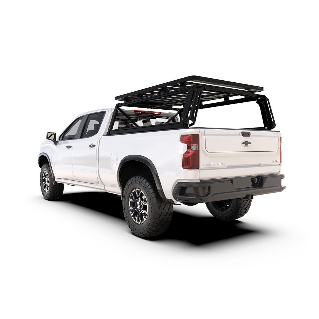 Le Pro Bed Rack Kit améliorera considérablement le transport de marchandises et l'accessibilité au-dessus du plateau de chargement de votre Chevrolet Silverado. Grâce aux multiples canaux pour accessoires et aux rainures en T du Pro Bed Rack Kit, vous pouvez facilement installer une large gamme d'accessoires spécifiques aux Front Runner et Pro Bed Rack. Le kit comprend notre porte-bagages emblématique, le Slimline II.