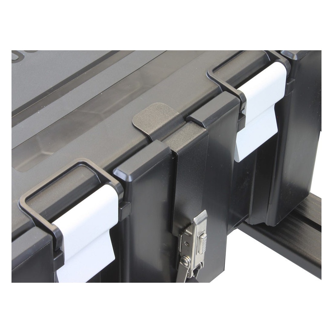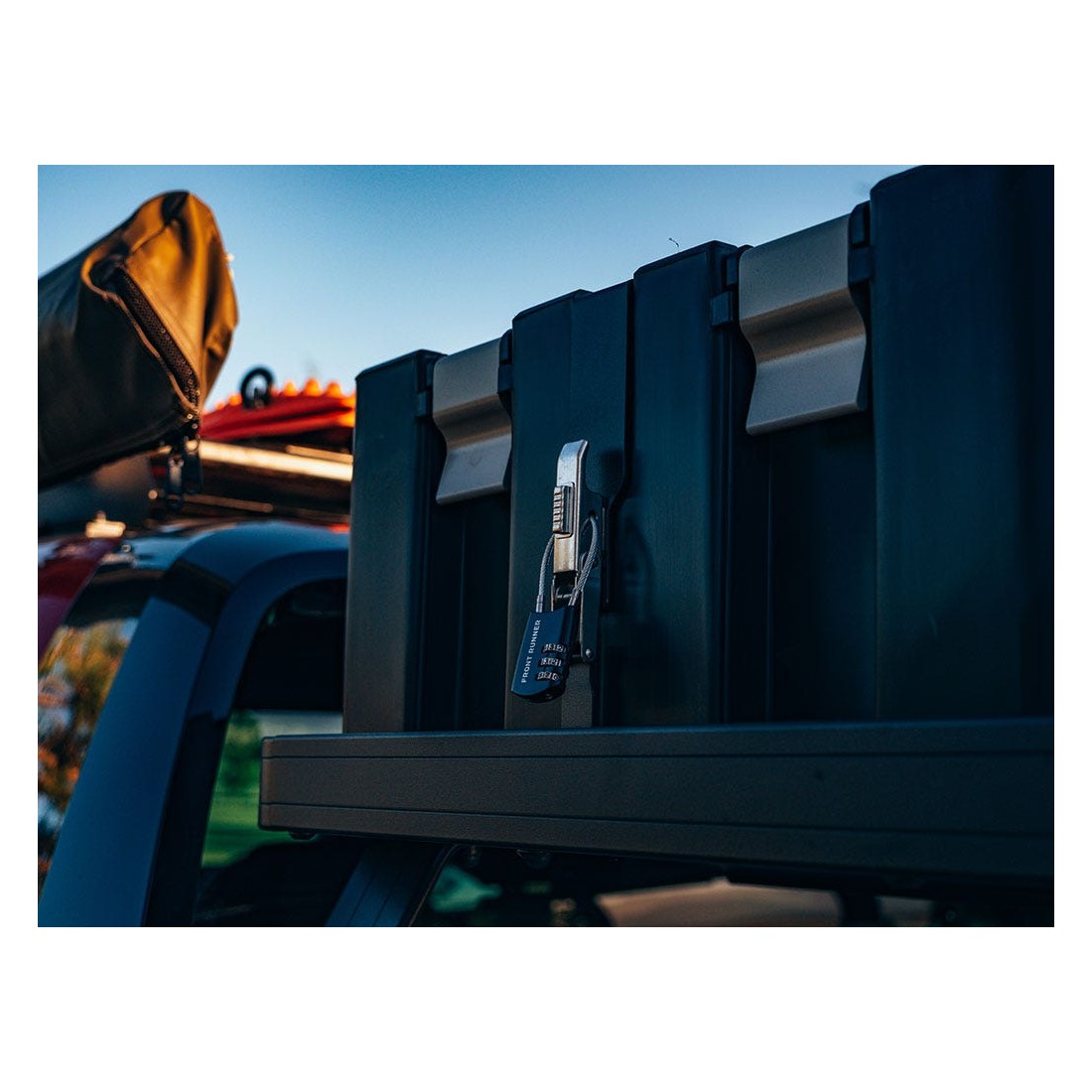 Fixe et maintient le SBOX031 fermement en place sur le dessus de votre galerie.Le placement polyvalent permet de fixer la SBOX031 en longueur ou en travers de la galerie.Accédez sans effort à la SBOX031 en libérant facilement le loquet à libération rapide.Le support peut être verrouillé avec un cadenas ou un RRAC134 (non compris) pour plus de sécurité et de tranquillité d'esprit.Comprend 2 bandes de caoutchouc en T pour éviter d'endommager votre galerie lorsque vous créez une surface antidérapante.Peut être utilisé avec RRAC129 pour un soutien supplémentaire sur les terrains extrêmes.Fabriqué en acier et revêtu de poudre avec le même revêtement durable que le porte-bagages Front Runner.Le matériel de montage et les instructions d'installation sont compris.Veuillez noter : SBOX062 ne sont pas compatibles avec RRAC201.