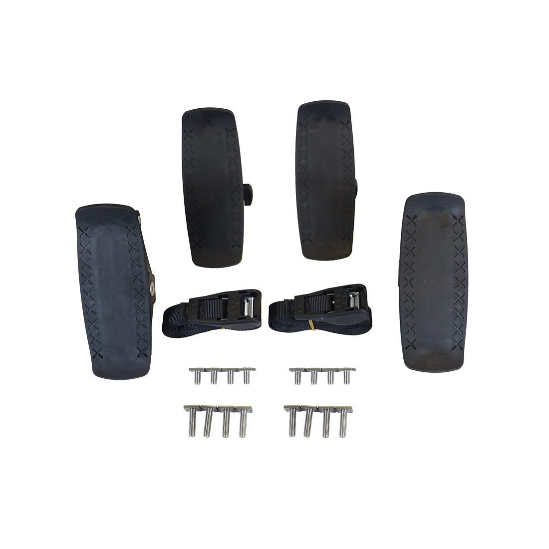 Designed to carry a variety of hull shapes and SUPs on your Cross Bars. Each bracket has an independent pivoting saddle. The flexible cushioned pads protect the hull. Large contact surface area for extra stability when transporting your kayaks. Includes 2 x Tie Down Straps with protective buckle bumpers. Accommodates kayaks and SUPs up to 900mm/35.4'' wide and 40kg/88.2 lbs. Installation hardware supplied.