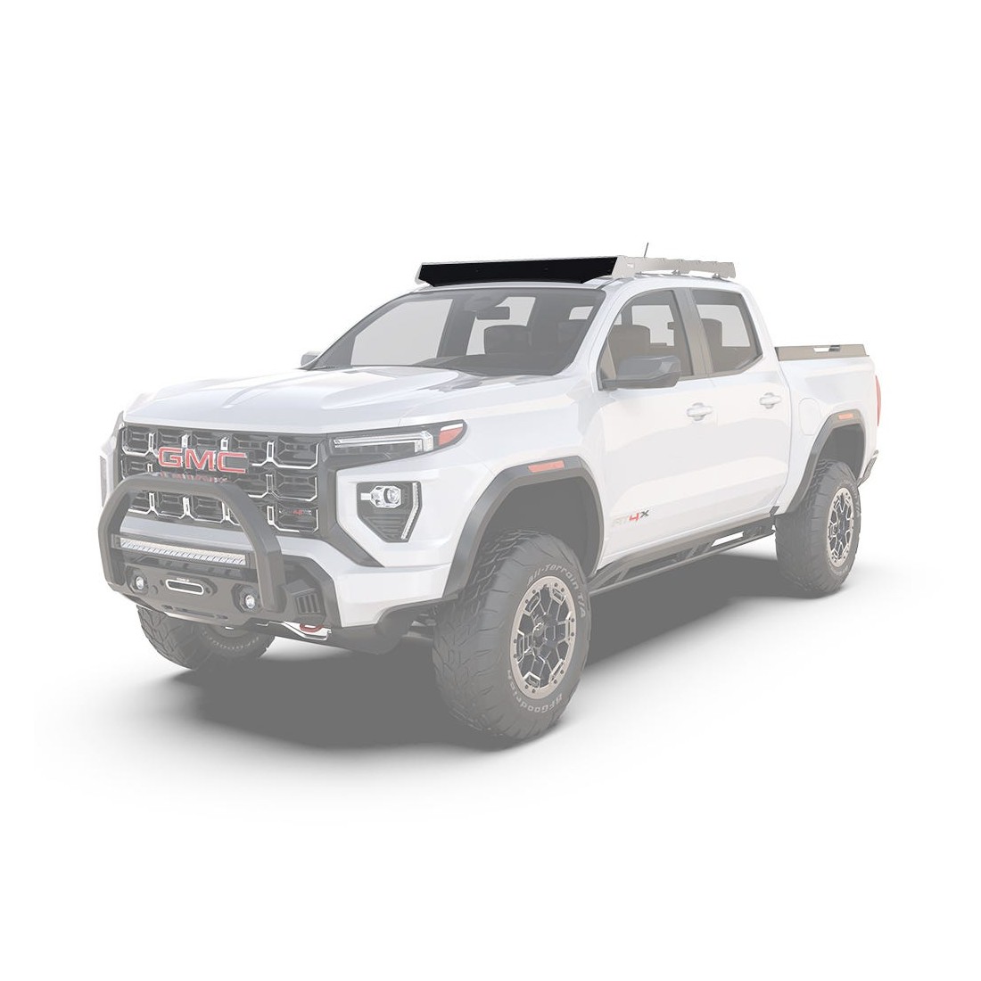 Le Chevrolet Colorado / GMC Canyon 3e génération (2023-actualité) Carénage de vent à crémaillère Slimsport redirige sans effort l'air sur votre galerie de toit et son équipement. Cet accessoire pour barres de toit Slimsport est facile et rapide à installer et réduit le bruit du vent.