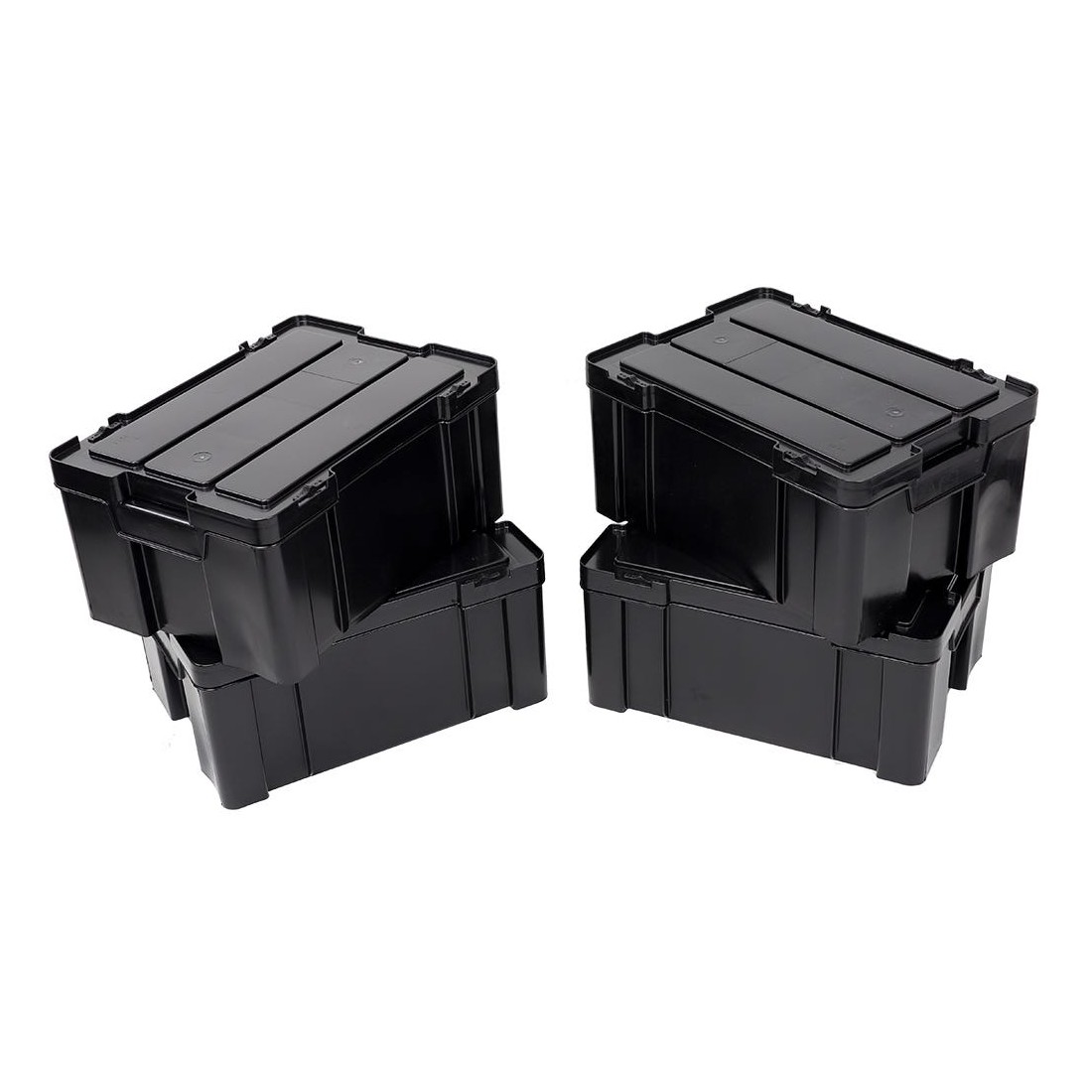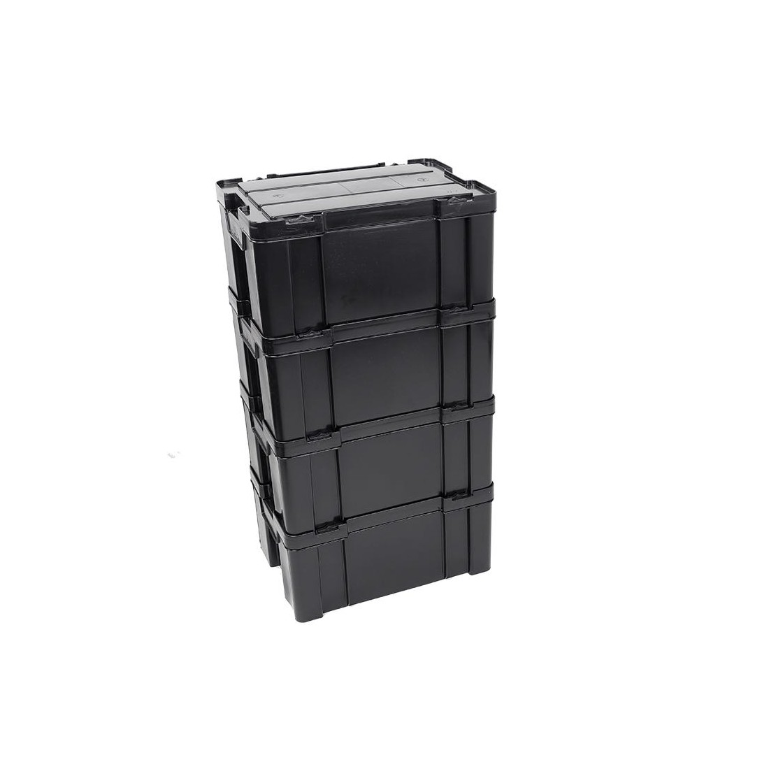 Arrêtez de vous perdre dans des solutions temporaires de transport de cargaisons. Mettez-vous au travail avec ces conteneurs de rangement verrouillables, empilables et durables. Si vous avez une cargaison supplémentaire, la commande de cet ensemble quadruple ajoute encore plus de valeur à votre stockage.