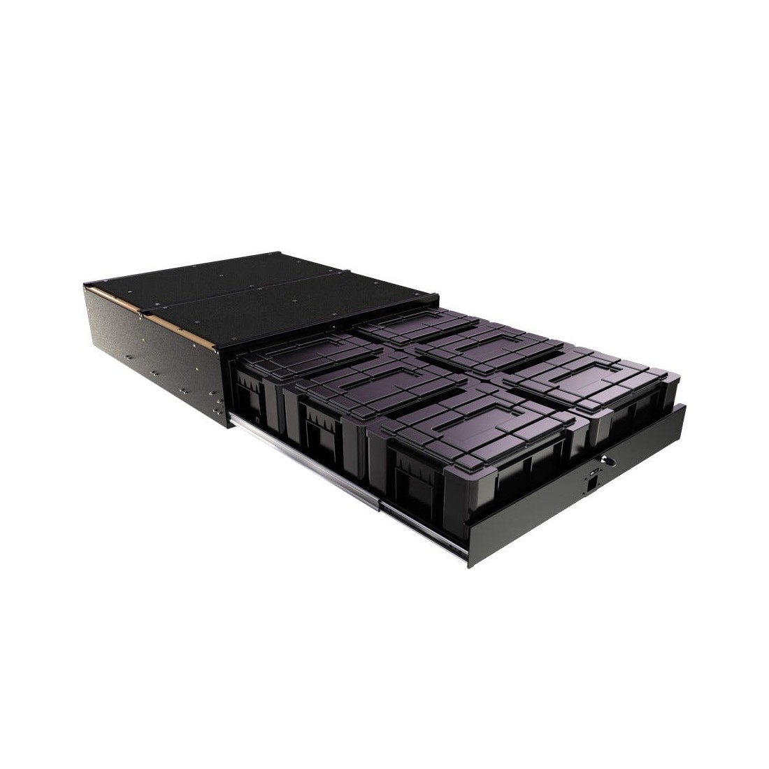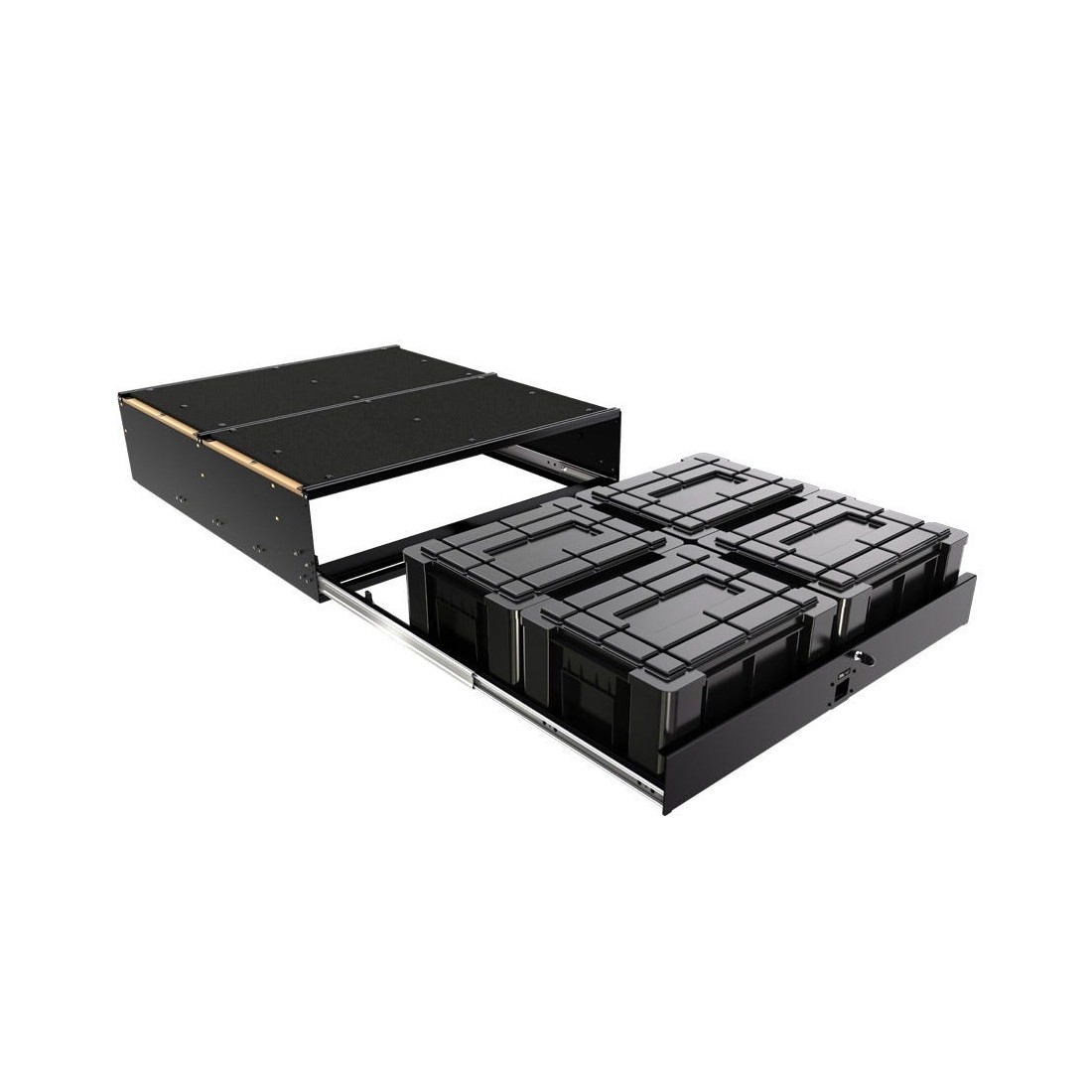 Ce kit de tiroir pour boîtes Wolf Pack est une solution pratique pour le rangement d’objets. Les boîtes Wolf Pack amovibles facilitent le transport des objets à partir de votre véhicule vers le terrain de camping, le garage, etc. Ce tiroir peut être placé dans plusieurs véhicules parce qu’il est ‘universel’. Ce système est conçu pour des conditions on-road mais aussi off-road. Dimensions du produit: 1252mm (49.3'') L x 1083mm (42.6'') l x 310mm (12.2'') H