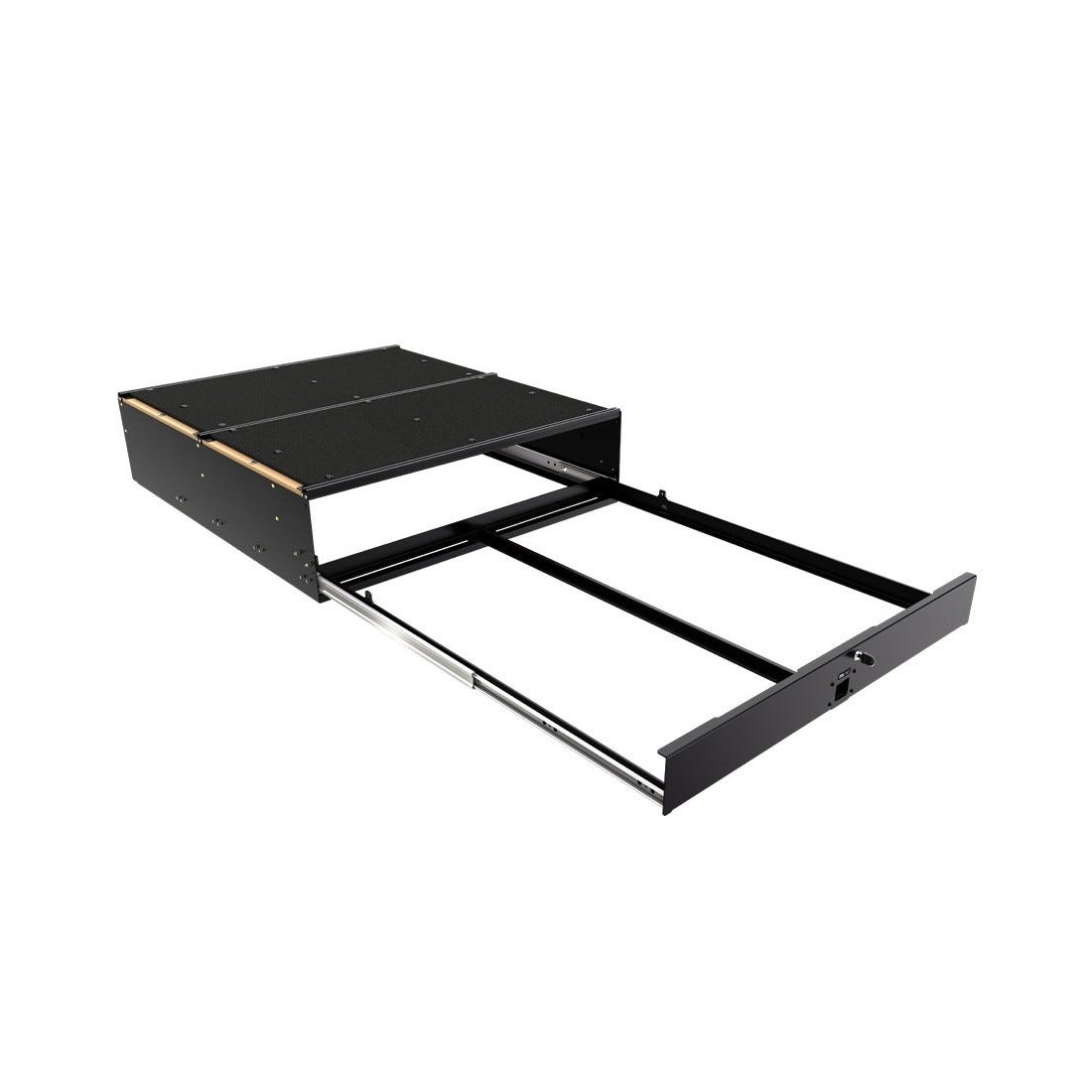 Si Front Runner ne propose pas de kit de tiroir spécifique pour votre marque et votre modèle de véhicule, envisagez ce tiroir '' universel ''. Étant donné que ce tiroir ne s'adapte qu'aux véhicules de taille appropriée, veuillez consulter les SPECS pour connaître les mesures exactes du produit.Ce tiroir amovible comprend une glissière, 6 Wolf Packs Front Runner, une serrure et des clés, 3 rails d'arrimage, 6 anneaux d'arrimage, des supports, tout le matériel d'installation nécessaire et des instructions détaillées.Les Wolf Packs Front Runner, qui constituent le cœur de ce système de rangement modulaire, sont parfaitement adaptés aux articles de cuisine, aux produits secs, aux outils, aux appareils photo, aux articles de toilette et même aux vêtements.Ces conteneurs de rangement empilables et durables SBOX008, qui se ferment à l'aide de clips, sont fabriqués en plastique noir haute résistance et sont dotés de poignées intégrées pour faciliter le transport.Insérez SBOX027 dans le SBOX008 comme doublure rembourrée à compartiment ajustable pour protéger davantage le matériel photo, les ustensiles de cuisine et autres articles fragiles. (Packs plats Front Runner vendus séparément).Capacité de charge du tiroir de 113 kg / 250 lb.Fonction de maintien en position ouverte : le tiroir se ''verrouille'' en position ouverte lorsqu'il est garé sur des surfaces inégales.Les glissières à roulements haute résistance permettent au tiroir de s'étendre à près de 100 % de sa base ancrée.Le mécanisme de verrouillage est verrouillable en position fermée.Offrez-vous la tranquillité d'esprit et la sécurité en verrouillant le matériel de soutien important.Le plateau plat comprend trois canaux de fixation de la cargaison et 6 RRAC012.Personnalisez vos propres configurations de rangement. Empilez et fixez des bagages, des SBOX008, des SBOX001, des boîtes en aluminium et d'autres conteneurs de stockage sur le pont supérieur à l'aide de STRA034 ou d'autres sangles.Le pont au-dessus des tiroirs peut également être utilisé pour monter les glissières Front Runner Cargo / Fridge.Le pont est recouvert d'un tapis en nylon durable et résistant aux UV.La surface du tapis en nylon est élastique et permet de fixer les marchandises tout en les isolant du bruit et des vibrations.Fini avec le même revêtement en poudre noir durable que les galeries de toit Front Runner et les autres produits Front Runner.Ce tiroir amovible Front Runner peut être installé en quelques minutes en fixant les crochets en C et les tendeurs fournis aux points de fixation existants du véhicule. Le retrait des tiroirs est tout aussi facile.Ce système de rangement est conçu pour être utilisé à l'intérieur ou dans un Pick-Up équipé d'un auvent, d'une carrosserie de camping-car ou d'un autre style de couverture de lit/de chargement.Tous les systèmes de rangement Front Runner sont couverts par une garantie de 2 ans.NOTE : Ces tiroirs '' universels '' ne sont pas livrés avec un jeu de compléments de plateau ou de plaques frontales spécifiques au véhicule.Note : L'installation de ce produit nécessite un outil Rivnut. Nous suggérons d'utiliser le VACC016.Si vous avez des questions sur la compatibilité de ce produit avec votre véhicule, veuillez contacter Front Runner avant l'achat.