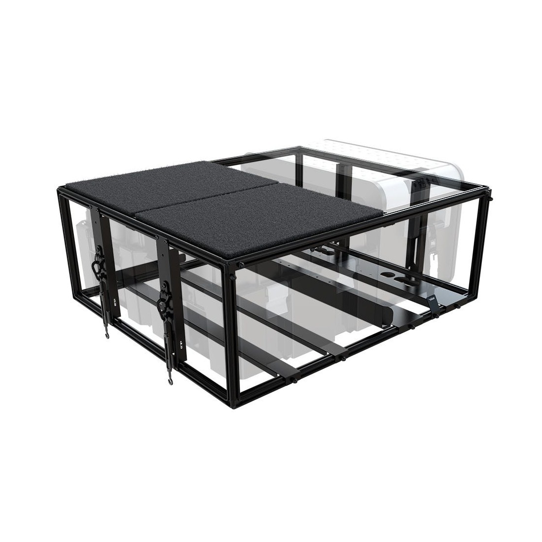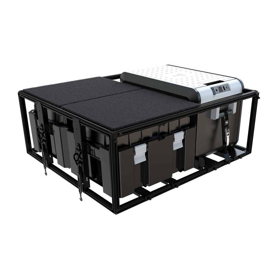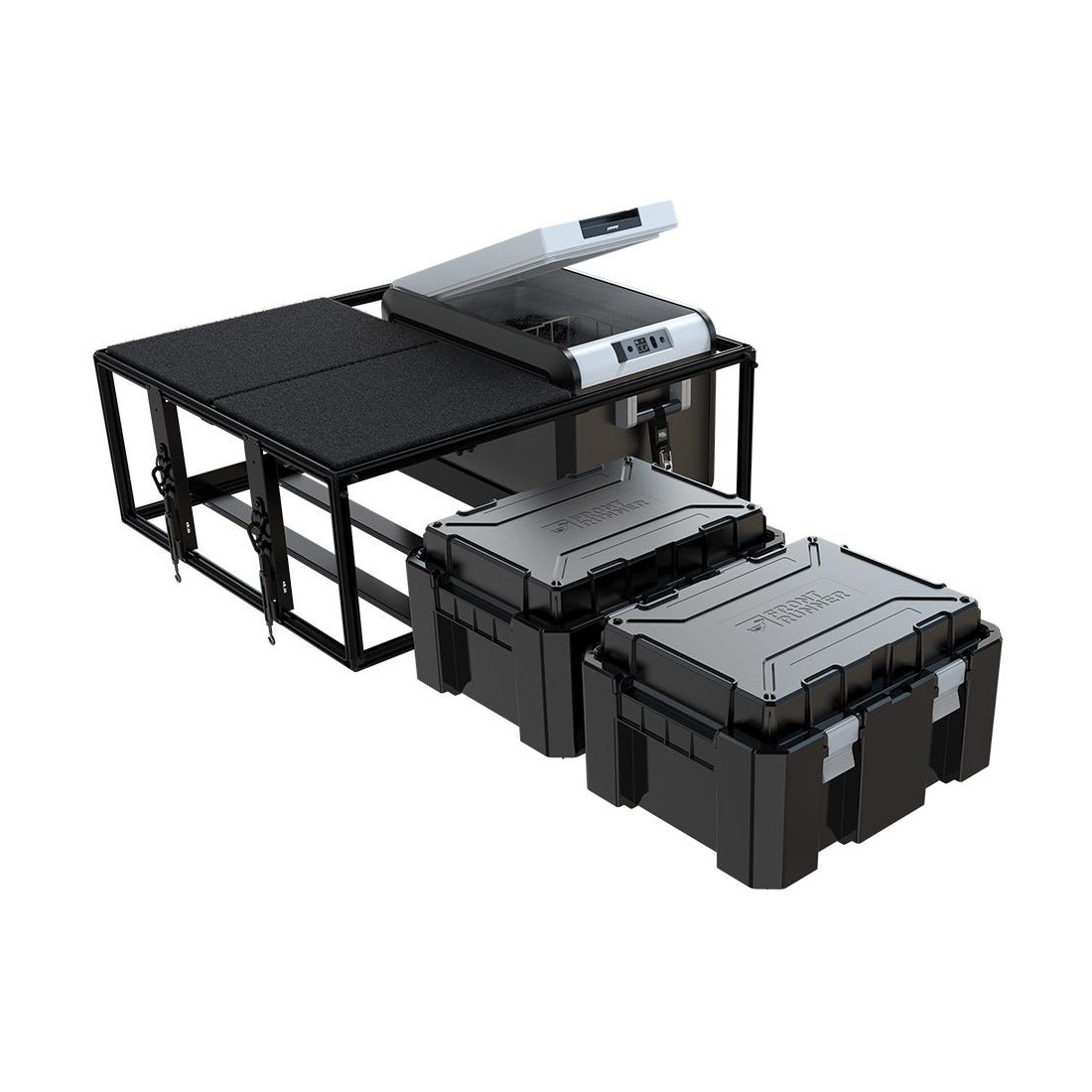 Ce système de stockage modulaire pour véhicule est conçu pour fixer deux conteneurs de stockage Wolf Pack Pro Hi-Lid et un réfrigérateur de 35 ou 45 litres. Sa conception innovante à ressort garantit la stabilité, empêchant tout mouvement ou bruit de vos boîtes et de votre réfrigérateur lorsque vous êtes sur la route. En outre, le système est doté d'un plateau supérieur polyvalent, parfait pour monter une glissière Front Runner Cargo ou Fridge, ce qui améliore à la fois la fonctionnalité et l'accessibilité.