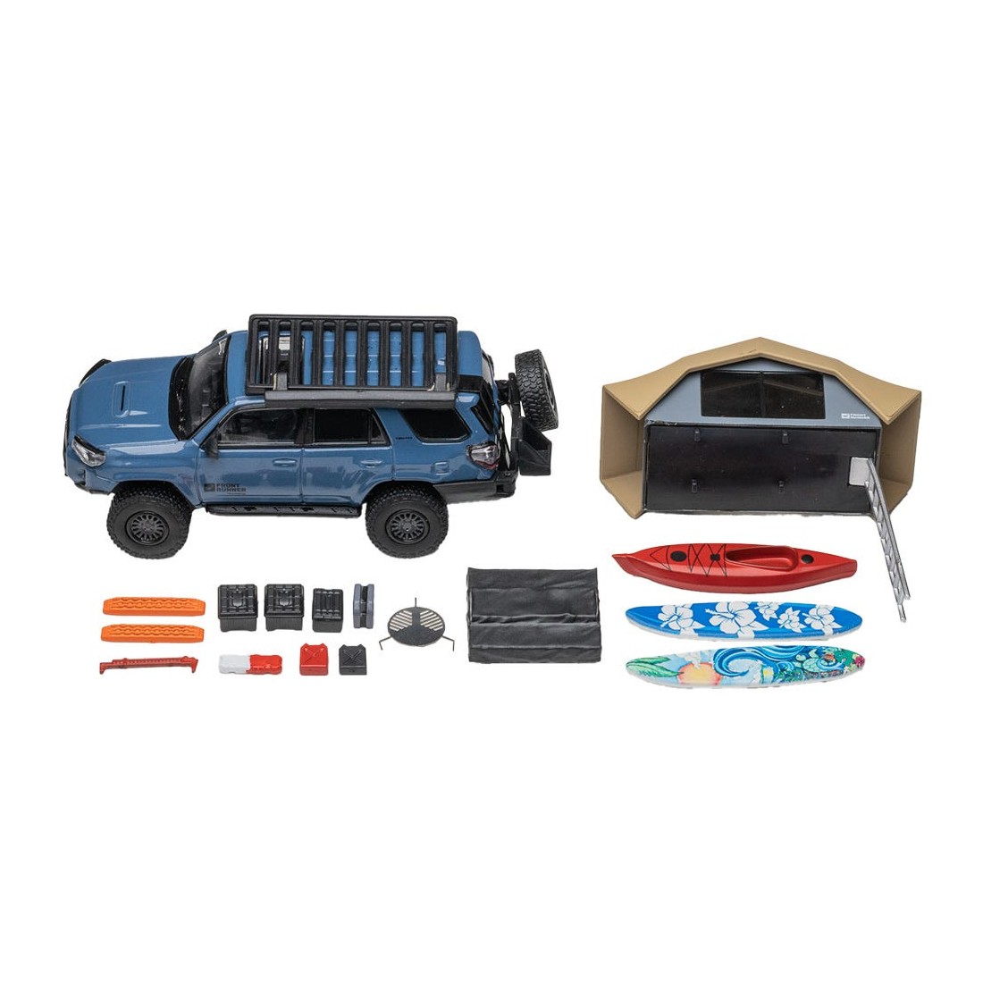 The Limited Edition Toyota 4Runner TRD Pro Overland Cavalry Blue Diecast Model Set is the ultimate purchase for Diecast collectors and overland enthusiasts! Each 1:64 scale model is individually numbered and features many top-tier Front Runner Dometic accessories, including the Roof Top Tent, Awning, Wolf Pack, Water Tank, Bike Carrier, and Bikes, among others.
