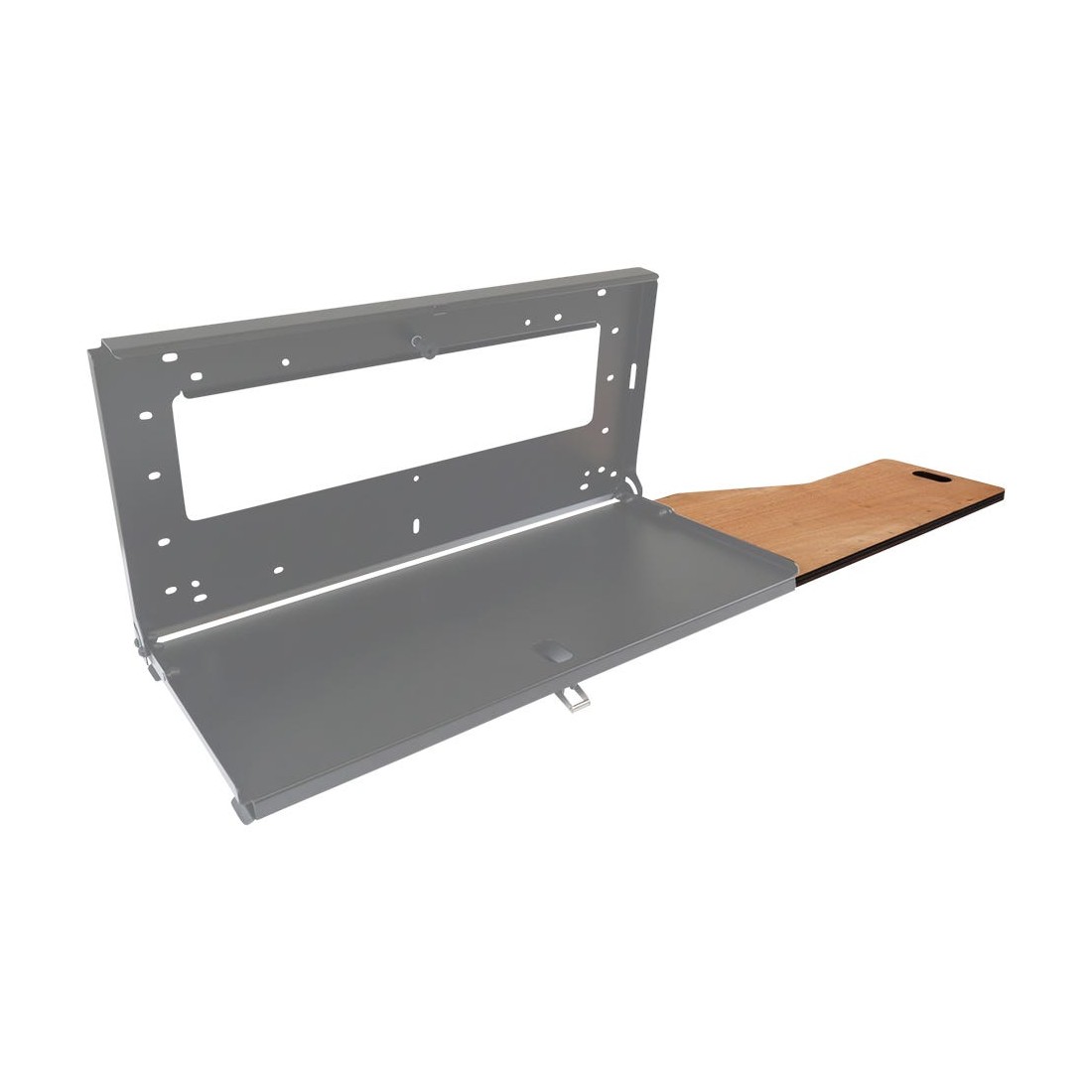 Une extension de plateau de surface de travail pour votre Ford Bronco qui suit les contours de la porte arrière battante.Cette extension de plateau remplace le plateau d'origine de la table pliante (TBRA034).Ajoute une longueur supplémentaire de 445 mm (17,5'') à votre surface de travail.