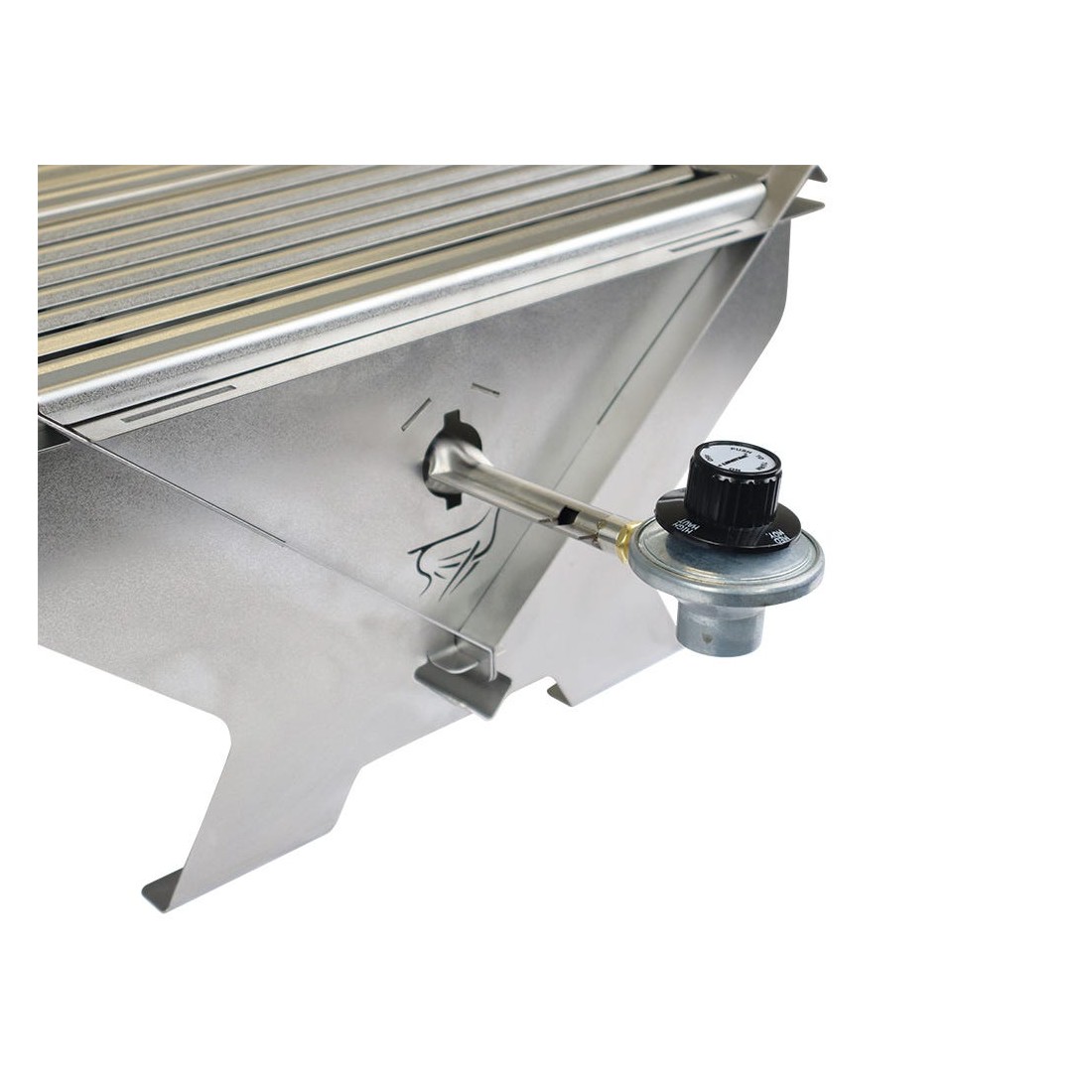 A Gas BBQ Grill that is designed to pack flat at 1.5 inches / 38mm thick. Includes an XD04 Regulator. Features a large grill surface area. Sturdy base for safe grilling. Quick and easy 30-second setup. The sides of the grill serve as a wind break. Safely contains your gas fire and keeps the fire elevated off the ground. Constructed from durable high-strength steel, providing high rust and corrosion resistance. Supplied with gird lifting tools. Stores neatly in SBOX031*.*Note: The Wolf Pack Pro is sold separately