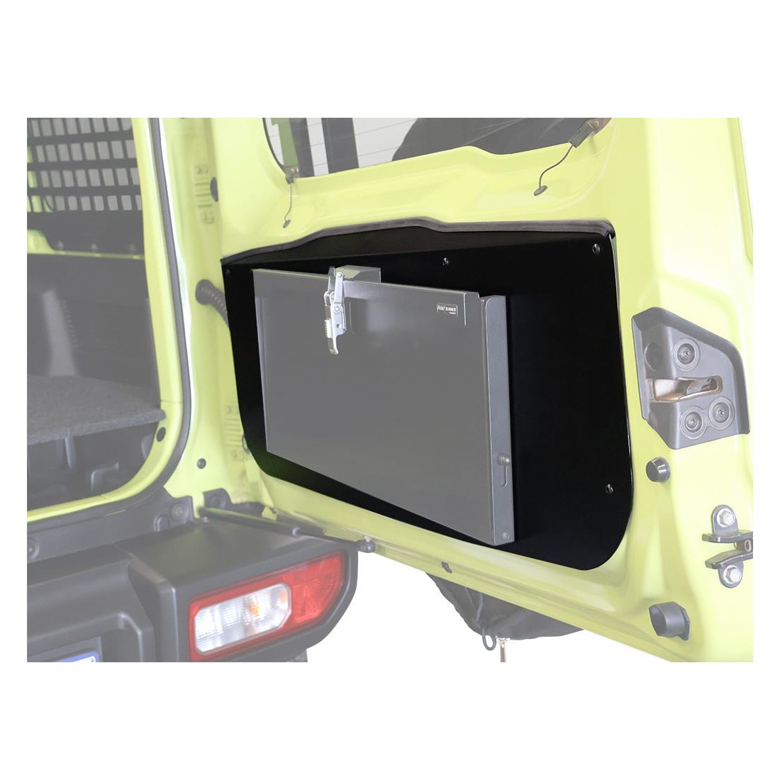 Une plaque de base qui s'installe sur la porte battante arrière de votre Suzuki Jimny.Permet l'installation du TBRA054 * vendu séparément.Se monte sur la porte arrière de la Suzuki Jimny en retirant la garniture plastique d'origine/la carte de porte.Fabriqué en acier haute résistance et revêtu par poudrage dans la même finition noire durable que les porte-bagages Front Runner.Un perçage est nécessaire pour l'installation.Remarque : non compatible avec les modèles Jimny dotés d'un verrouillage manuel interne du hayon.