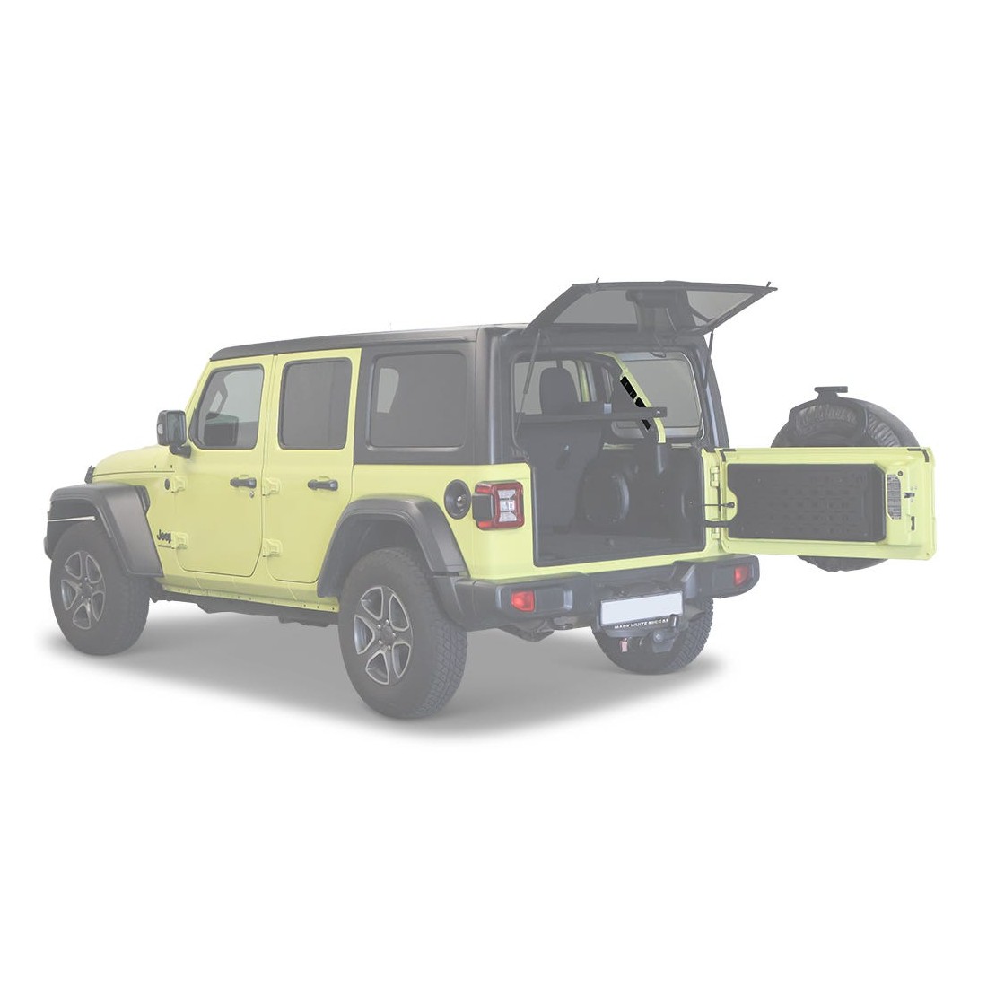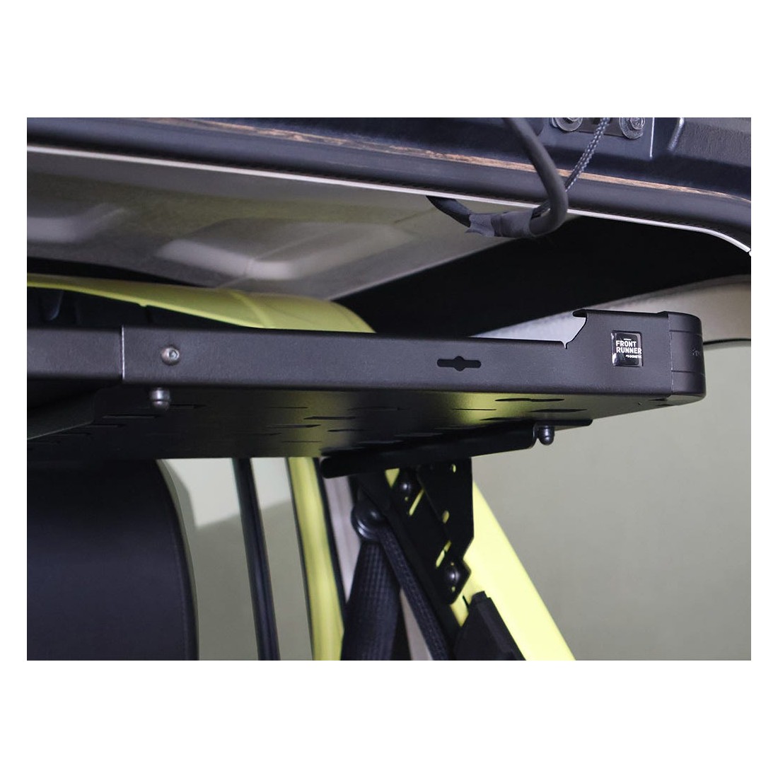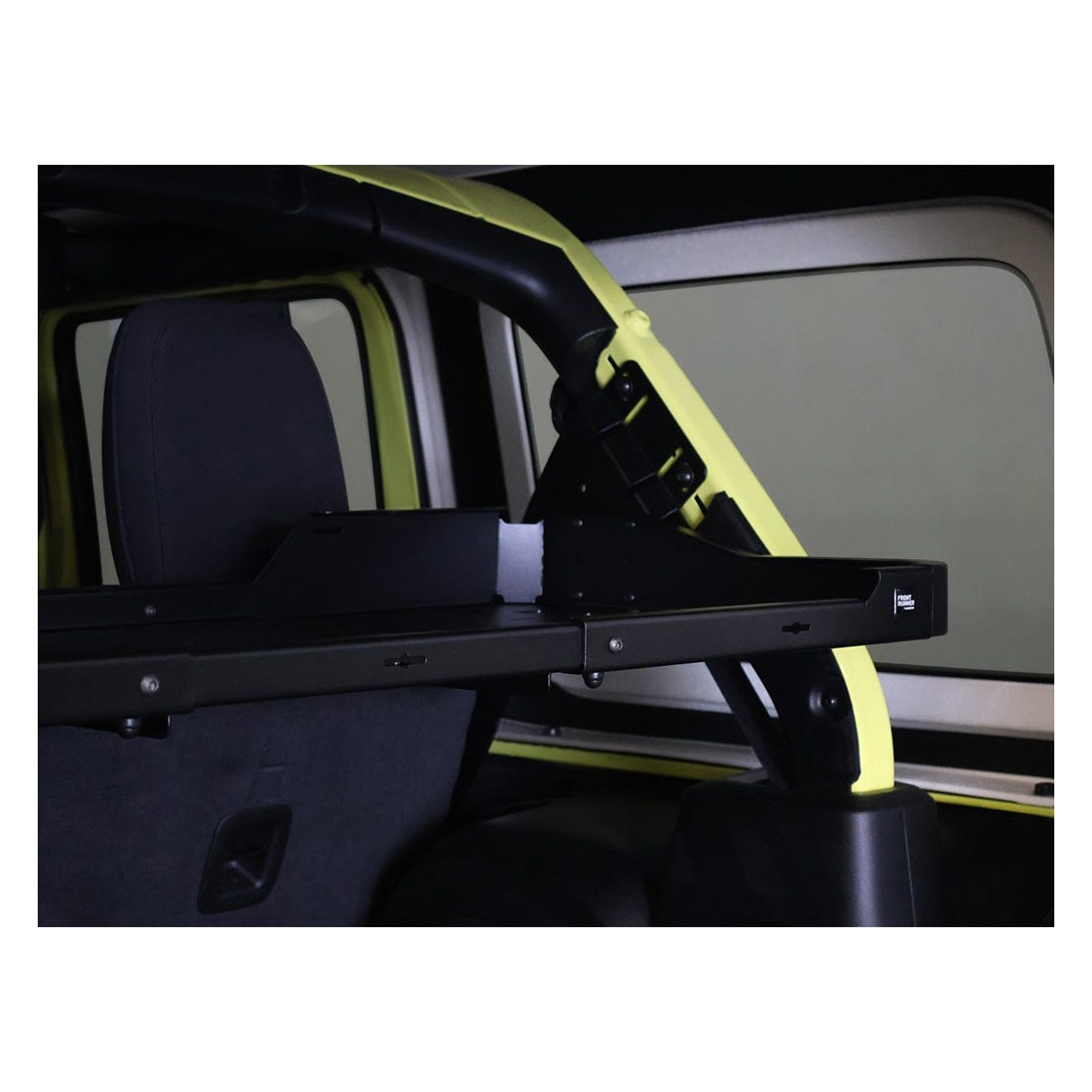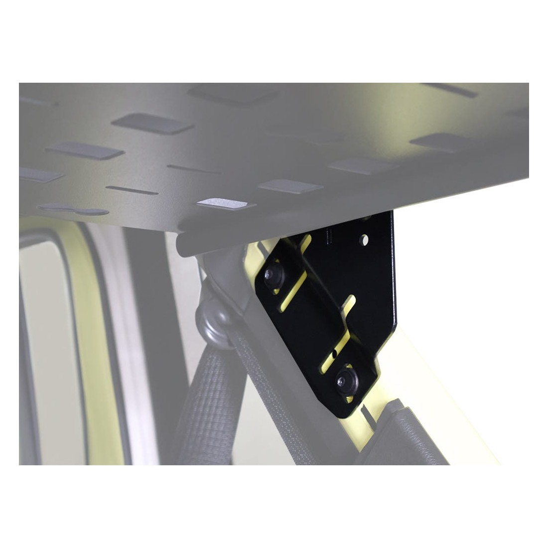 Ces supports en acier revêtus de poudre noire permettent de monter la tablette de rangement Molle intérieure sur l'arceau de sécurité de votre Jeep JLU. Ces supports solides sont réglables en hauteur et se fixent sur les points de montage OEM, sans aucun perçage.