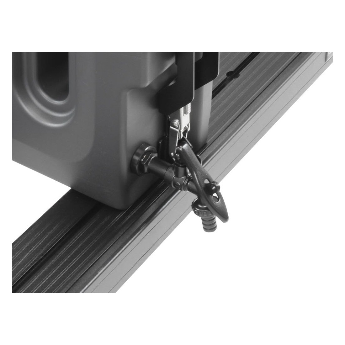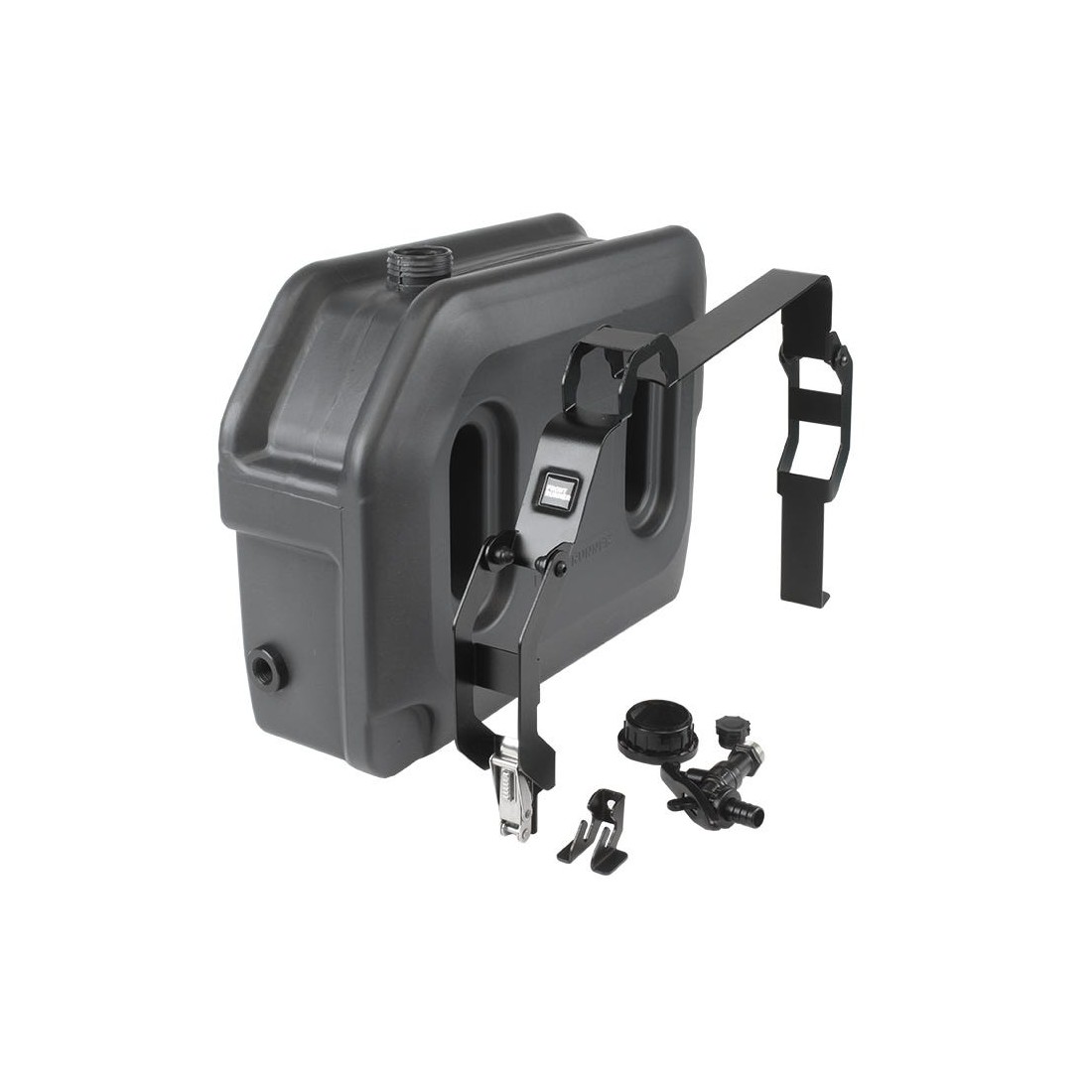 Capacité de 20l / 5,2 gal.Rendu en polyéthylène de qualité alimentaire et sans BPA.Support de montage sur la galerie et robinet verrouillable compris.Comprend les supports nécessaires au montage du réservoir sur les côtés du porte-bagages Slimline II.Le support de montage est doté d'un loquet avec cran de sécurité.Verrouillez votre loquet à l'aide de RRAC134, afin d'empêcher toute manipulation du bouchon du conteneur.Ce réservoir d'eau Pro est doté d'un raccord en polyéthylène 1/2'' (filetage BSP) pour le robinet fourni ou tout autre raccord 1/2''.Remarque : Ce produit n'est pas compatible avec la gamme de kits de galerie Slimsport.