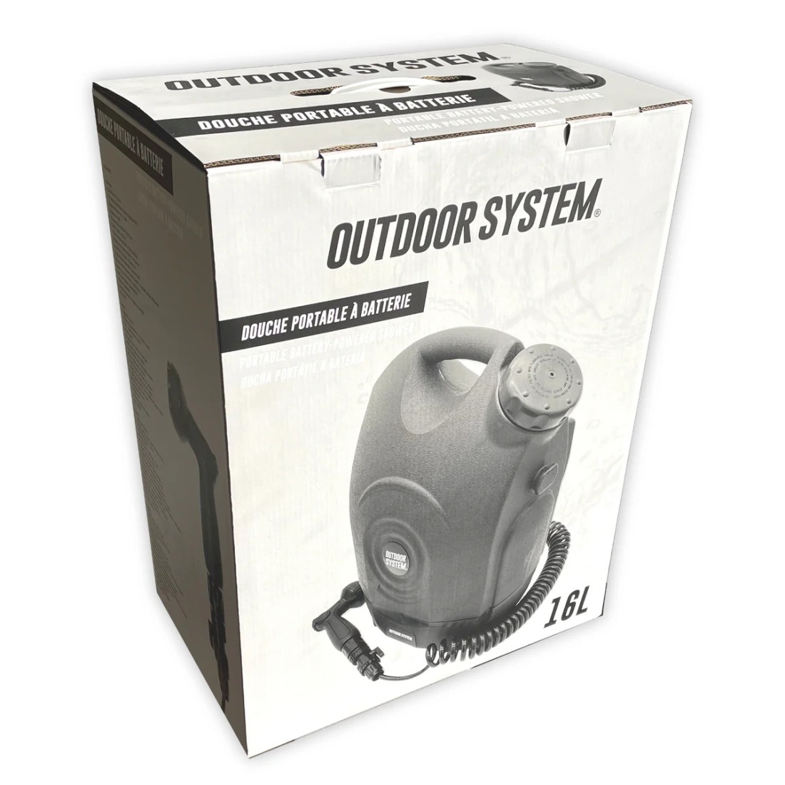 Outdoor SystemLa douche portable Outdoor System de 16 litres combine une grande réserve d'eau avec le confort d'un pompage automatique.