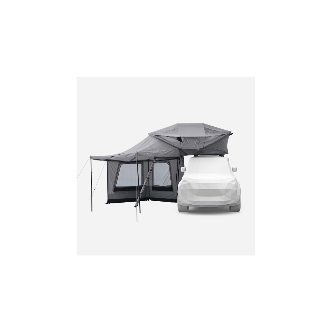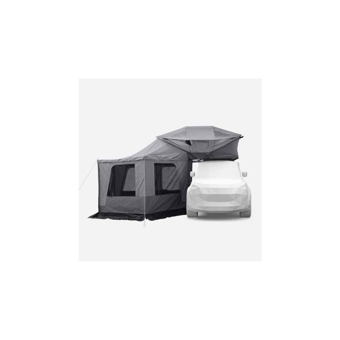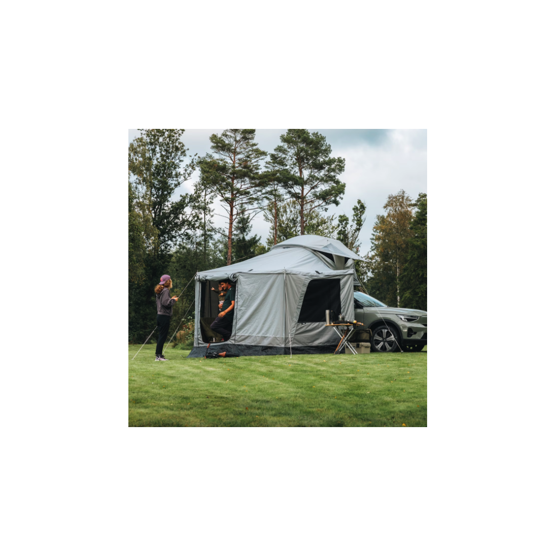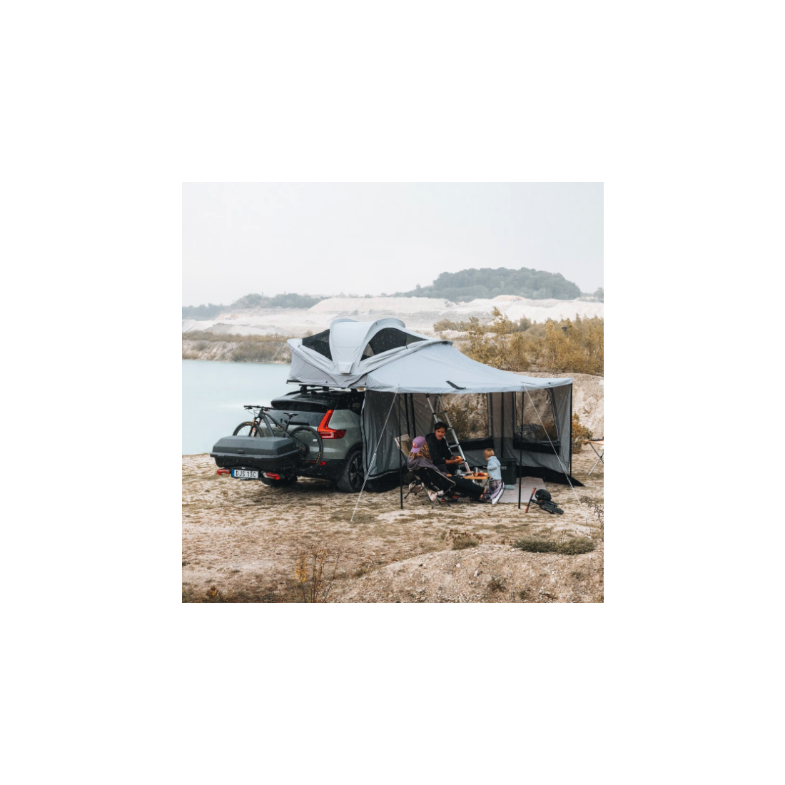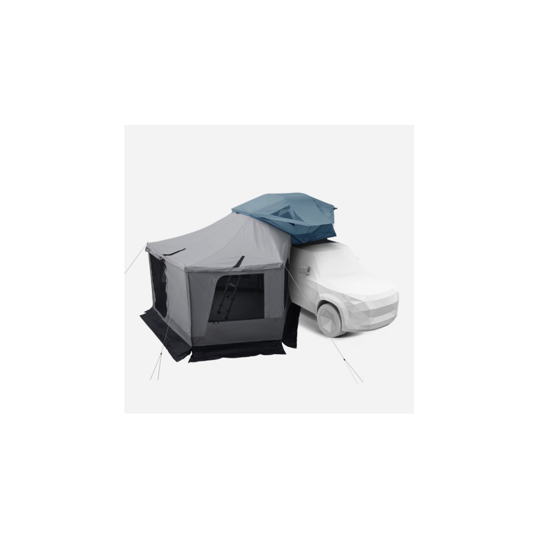 Ce kit contient deux grandes parois qui se fixent sur votre auvent Thule pour créer un espace fermé et protégé sur le côté de votre voiture.