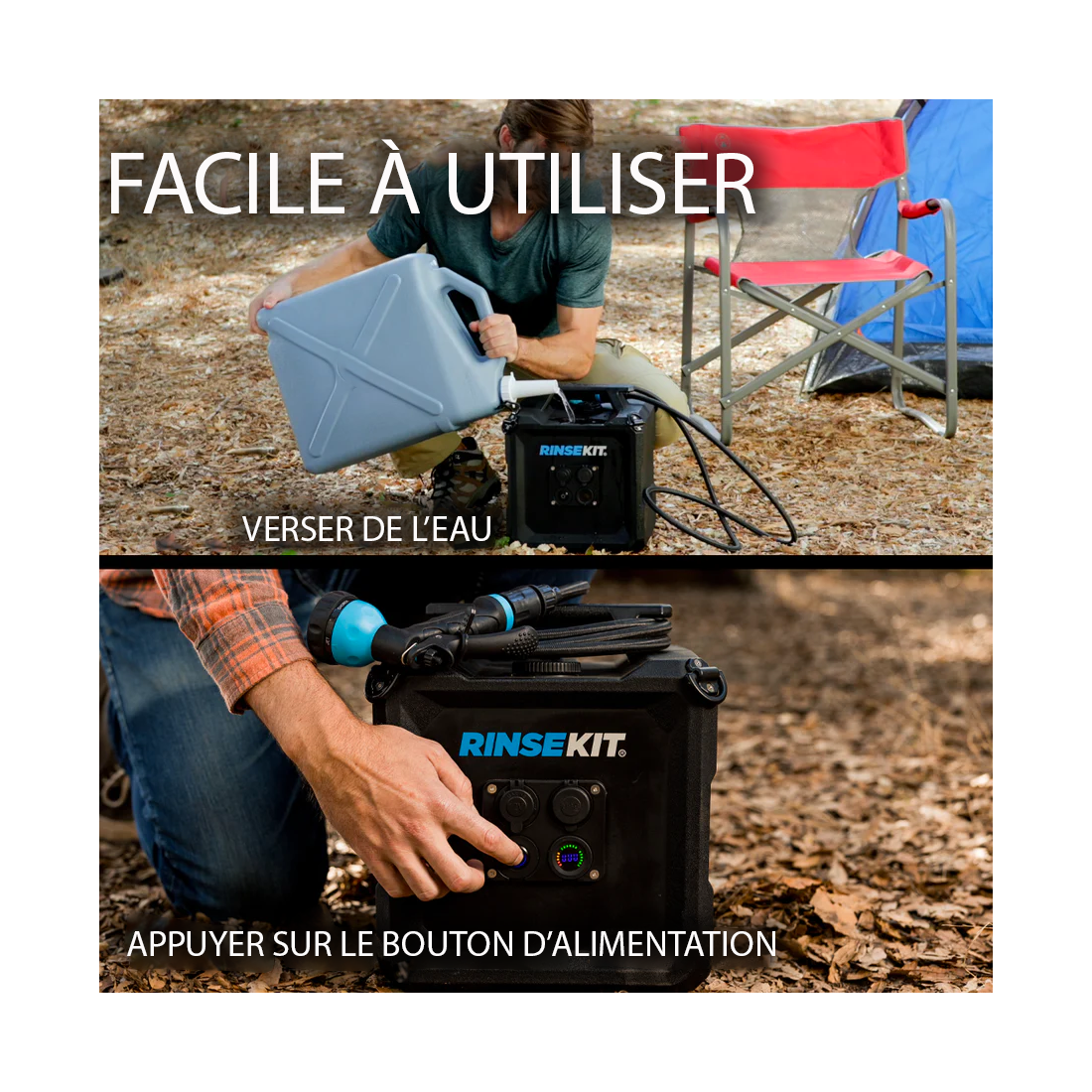 Le RinseKit Cube + le Hyper Heater 2.0 redéfinit la douche portable avec sa capacité de 15 litres, une pressurisation alimentée par batterie, et une conception robuste. Facile à utiliser, il offre jusqu'à 8 minutes de pulvérisation continue et associé au Hyper Heater vous aurez une eau chaude en 30 seconde seulement. Conçu pour durer, il représente la solution idéale pour rester propre et rafraîchi lors de vos aventures en plein air.