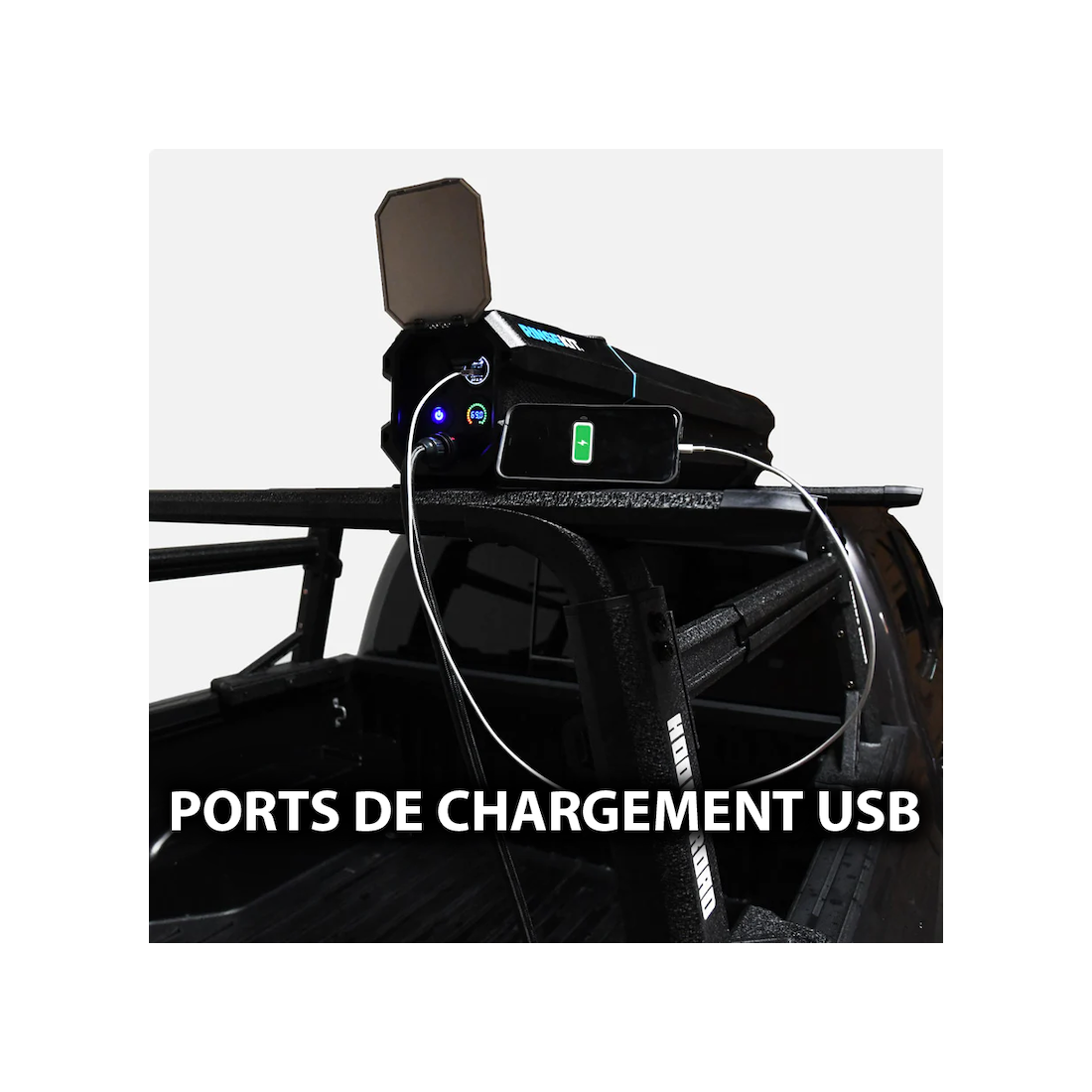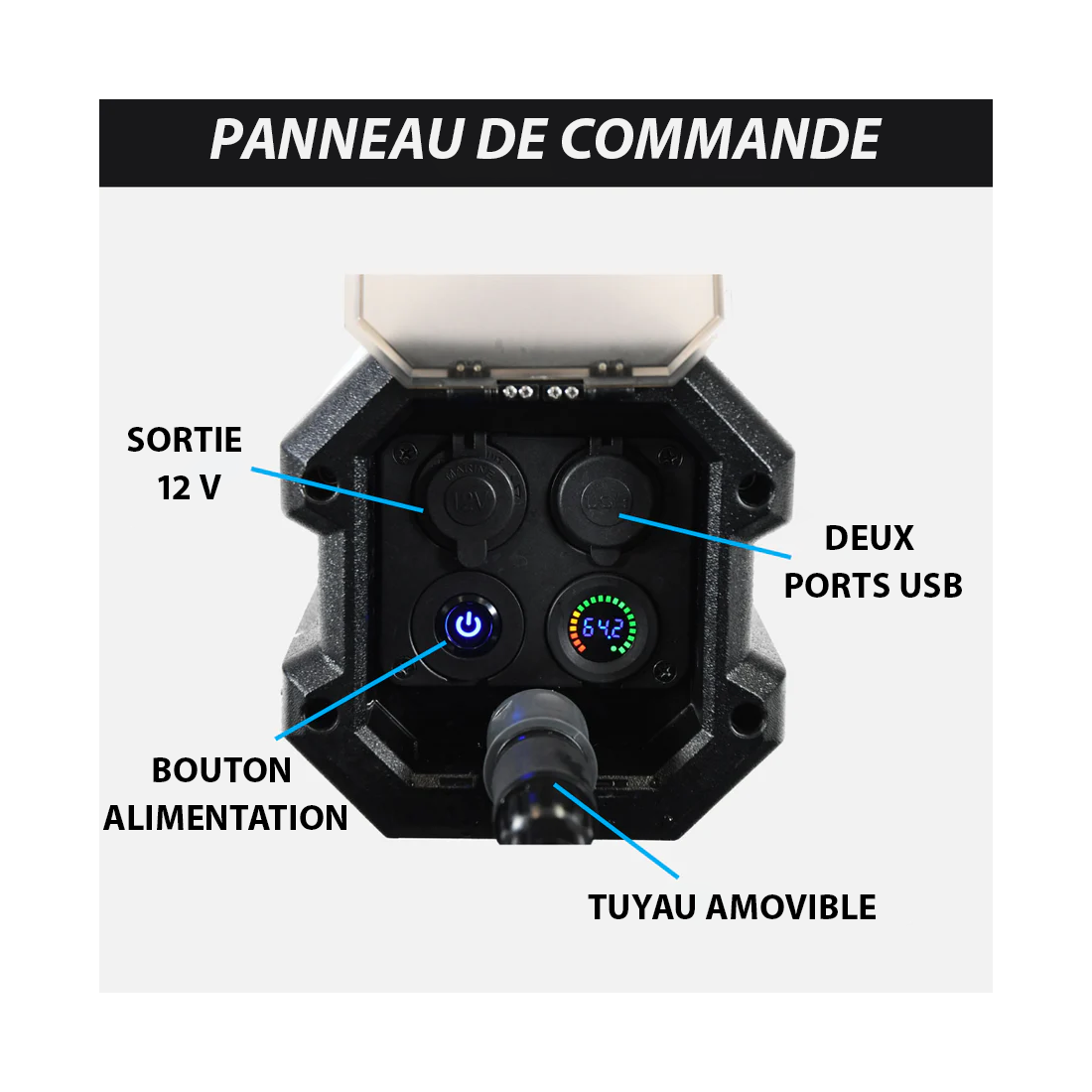 C'est une douche facile à utiliser avec une pressurisation puissante pour éliminer la saleté tenace. L'alimentation vous sera toujours disponible même en déplacement via les deux ports USB et un port de 12 V.