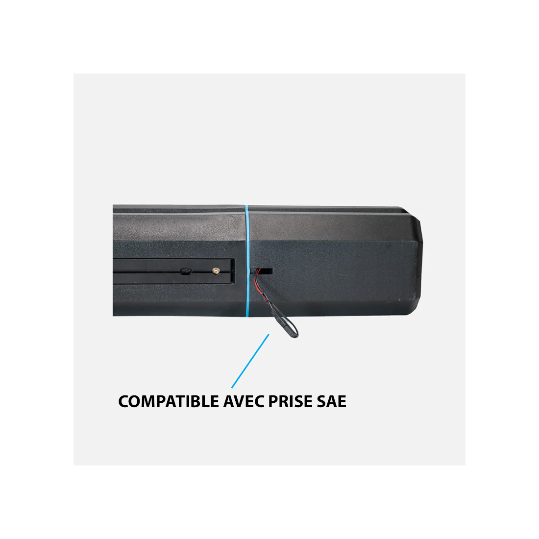 Vous pouvez également la connecter via l'alimentation SAE de votre véhicule pour ne pas avoir besoin de recharger la batterie.