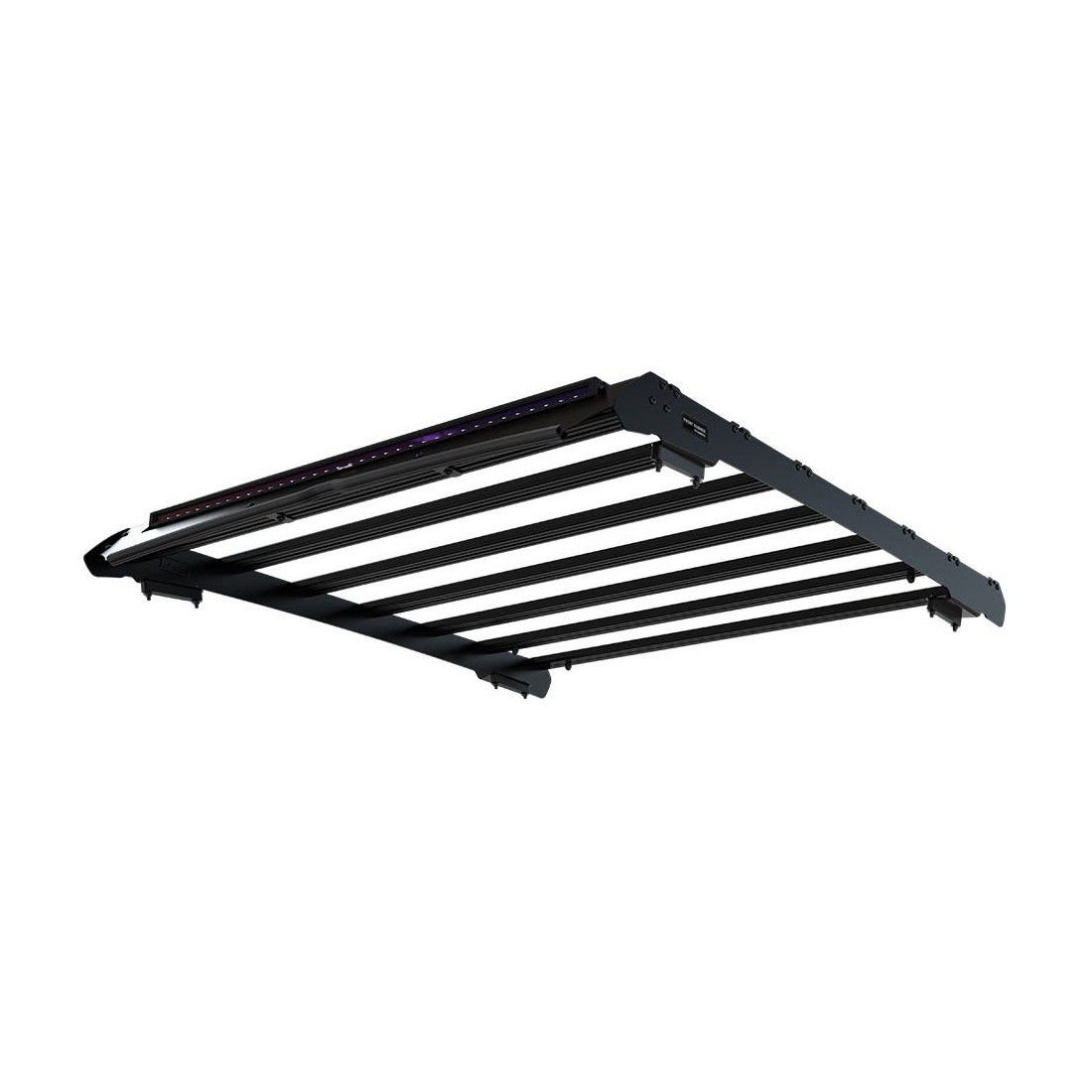 This low-profile flat deck Slimsport rack has a load-carrying area of 1403mm(55.2'') x 1201mm(47.3''). The sleek side rails have integrated mounting feet. The mounting feet also have additional brace brackets for added strength. The high-strength aluminum slats have T-slots suitable for all Front Runner top mount accessories. Easily add on the RRAC182 for most Front Runner side mount accessories (sold separately). The included 40'' Light Bar wind fairing with rubber edge trim, makes the rack ultra-quiet. Included is the RRAC336 with a 40'' cutout to allow the use of the LIGH213 (sold separately). Fitment guide and all mounting hardware included. Note: Drilling required for installation. Note: Under Rack Tables and some side mount accessories such as JADA010 and RRAC103 are not compatible with the Slimsport Tray range. All Front Runner Dometic racks are backed by a 5‑year warranty*